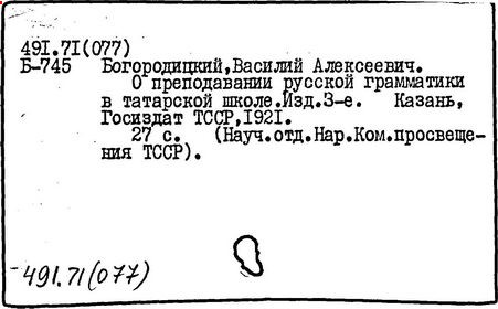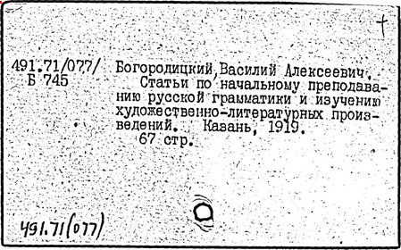 Литература: Ильинский Г., Заслуги профессора В. А. Богородицкого в области языковедения, "Вестник научного общества татароведения", 1927, № 7; Гарифьянова Р., В. А. Богородицкий об изучении русского языка в татарской школе, «Русский язык в национальной школе» , 1957, № 2; Моисеев А. И., В. А. Богородицкий (1857 - 1941), «Русский язык в школе», 1966. № 6; Асадуллин А.Ш.., Из опыта преподавания русского языка в татарской школе, Казань, 1981, гл. 3; Mироносицкая А. Н., Библиография, указатель трудов В. А. Богородицкого, в кн.: Труды Института языкознания Академии наук СССР, т. 2, М., 1953.