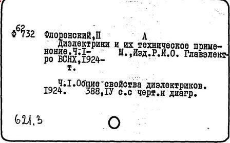Наряду с этим он возвращается к занятиям физикой и математикой, работая также в области техники и материаловедения. С 1921 года работает в системе Главэнерго, принимая участие в ГОЭЛРО, а в 1924 году выпускает в свет большую монографию о диэлектриках. Его научную деятельность поддерживает Лев Троцкий, нагрянувший однажды в институт с визитом ревизии и поддержки, что, возможно, в будущем сыграло в судьбе Флоренского роковую роль.