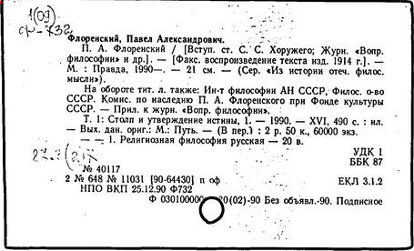 С 1916 по 1925 П. А. Флоренский пишет ряд религиозно-философских работ, включая «Очерки философии культа» (1918), «Иконостас» (1922), работает над воспоминаниями. В 1919 году П. А. Флоренский пишет статью «Обратная перспектива», посвящённую осмыслению феномена данного приёма организации пространства на плоскости как «творческого импульса» при рассмотрении иконописного канона в ретроспективном историческом сопоставлении с образцами мирового искусства, наделёнными свойствами таковой; в числе прочих факторов, прежде всего указывает на закономерность периодического возврата к применению художником обратной перспективы и отказа от неё сообразно духу времени, историческим обстоятельствам и его мировоззрению и «жизнечувствию».