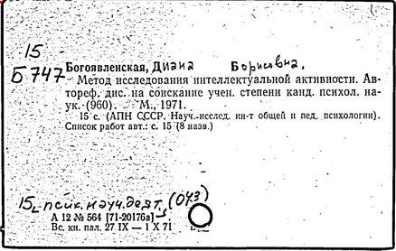 Д. Б. Богоявленская // ВЕСТНИК МОСКОВСКОГО УНИВЕРСИТЕТА. Серия 14,