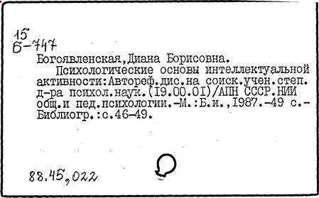 Д. Б. Богоявленская // ALMA MATER. Вестник высшей школы. - М.: Рос.