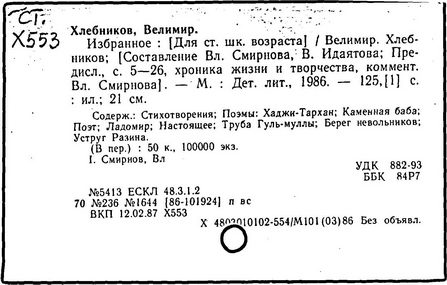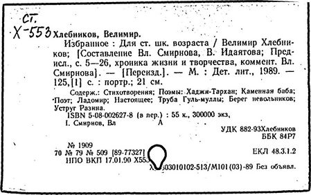 русский поэт. Родился в с. Малые Дербсты (бывшей Астраханской губернии) в семье учёного-биолога. В 1903‒1911 учился на физико-математическом факультете Казанского, затем на физико-математическом и историко-филологическом факультетах Петербургского университета. В 1905 начал печатать естественнонаучные сочинения, литературные ‒ в 1908. В 1910-х гг. входил в литературное объединение «Гилея», участвовал в футуристических изданиях. Художественные произведения вышли отдельными книгами: «Изборник», «Творения» (обе ‒ 1914). После Октябрьской революции 1917 работал в РОСТА, Главполитпросвете, печатался в периодике. Большая часть литературного наследия Хлебникова не была опубликована при его жизни.