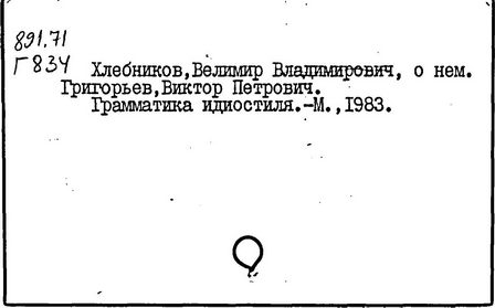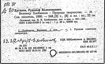 Литература: Перцов В., О Велимире Хлебникове, «Вопросы литературы», 1966, № 7; Харджиев Н., Маяковский и Хлебников, в кн.: Харджиев Н. и Тренин В., Поэтическая культура Маяковского, М., 1970: Степанов Н., Велимир Хлебников. Жизнь и творчество, М., 1975; Дуганов Р. В., Краткое «искусство поэзии» Хлебникова, «Изв. АН СССР. ОЛЯ», 1974, т. 33, № 5; его же. Проблема эпического в эстетике и поэтике Хлебникова, там же, 1976, т. 35, № 5.