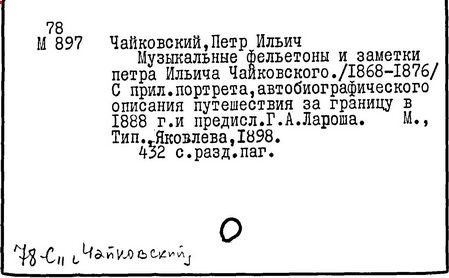 русский композитор. Родился в селении при Камско-Воткинском заводе Вятской губернии (ныне г. Воткинск, Удмуртия) в семье горного инженера. В 1850 – 1859 гг. учился в училище правоведения в Петербурге, в 1859 – 1863 гг. служил в Министерстве юстиции. В 1861 г. поступил в музыкальные классы Петербургского отделения Русского музыкального общества (с 1862 г. ‒ Петербургская консерватория). Занимался у Н. И. Зарембы (теоретические предметы) и А. Г. Рубинштейна (сочинение). В 1865 г. окончил консерваторию с отличием. В 1866 ‒ 1878 гг. профессор Московской консерватории по классам свободного сочинения, гармонии и инструментовки (среди учеников ‒ С. И. Танеев). В педагогических целях перевёл несколько музыкально-теоретических трудов, написал учебник «Руководство к практическому изучению гармонии» (1872 г.). В 1868 г. впервые выступил в печати как музыкальный критик. В 1871 ‒ 1876 гг. работал музыкальным рецензентом московских газет «Современная летопись» и «Русские ведомости», борясь за утверждение реалистических принципов в отечественной музыке. Художественные и общественные интересы сблизили Чайковского с Н. Г. Рубинштейном, критиками Н. Д. Кашкиным, Г. А. Ларошем, а также с Л. Н. Толстым, А. Н. Островским, артистами Малого театра, в том числе с П. М. Садовским, и др. Связям Чайковского с прогрессивными идейно-художественными течениями 60-х гг. XIX в. способствовало общение (во время частых поездок в Петербург) с членами «Могучей кучки».
