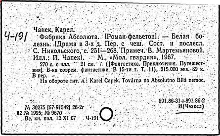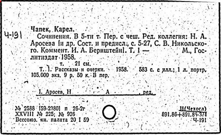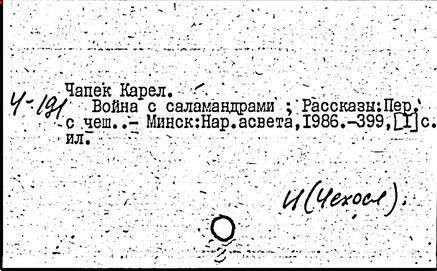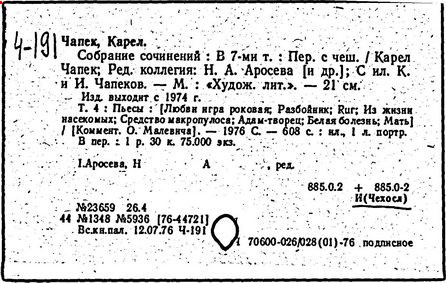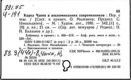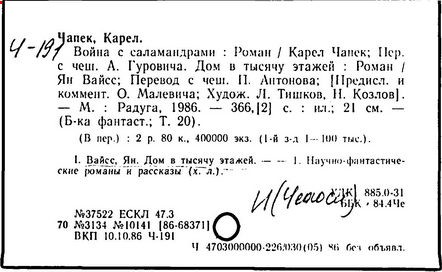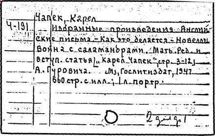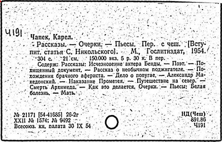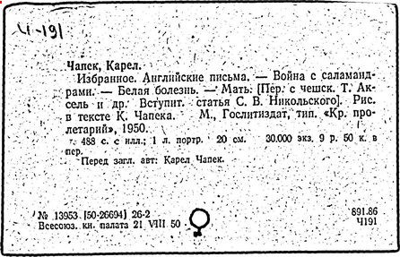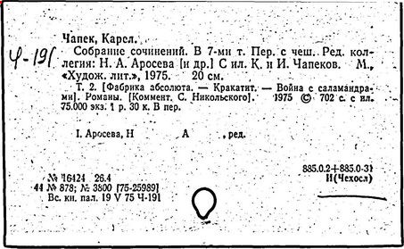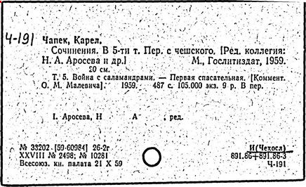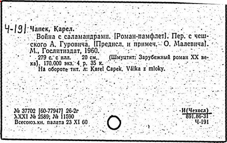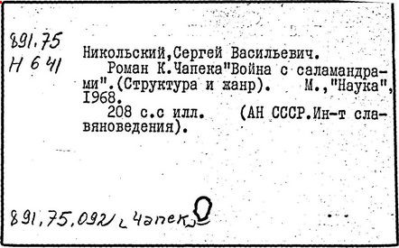 Литература: Шевчук В. I., Карел Чапек. Антифашистськi твори, Киïв, 1958; Малевич О., Карел Чапек. Критико-биографический очерк, М., 1968; Никольский С. В., Роман К. Чапека "Война с саламандрами", М., 1968; его же, Карел Чапек - фантаст и сатирик, М., 1973; Бернштейн И. А., К. Чапек. Творческий путь, М., 1969; Волков А. Р., Драматургiя К. Чапека, Львiв, 1972; Сучков Б., Карел Чапек. Опыт современного прочтения, "Знамя", 1974, №» 6 - 7; Mukařovský J., Kapitoly z české poetiky, sv. 2, Praha, 1948, s. 325-400; Harkins W. E., Karel Čapek, N. Y.-L., 1962; Janaszek-Jwaničková H., Karol Čapek czyli dramat humanisty, Warsz., 1962; Matuška A., Človek proti zkáze. Pokus о Karla Čapka, Praha, 1963.
