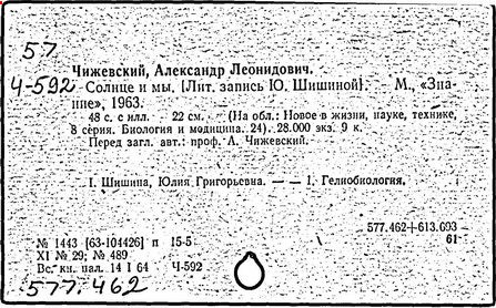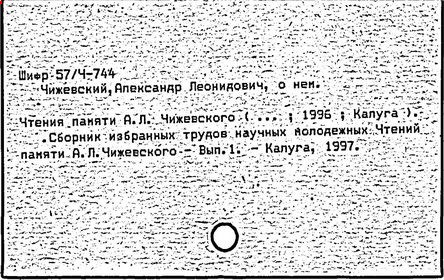 молодежных Чтений памяти А.Л.Чижевского (...; 1996; Калуга).
