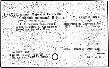 В 1930—1931 писала роман «Гидроцентраль», явившийся результатом проведенных ею лет на строительстве Дзорагэс. В годы Великой Отечественной войны М. С. Шагинян опубликовала книгу публицистических статей «Урал в обороне» (1944), в послевоенные годы — книгу «По дорогам пятилетки». Перу М. С. Шагинян принадлежат работы, посвящённые творчеству Т. Г. Шевченко, И. А. Крылова, И. В. Гёте, Низами, Й. Мысливечека и др. В конце жизни написала мемуары «Человек и время». Литературные портреты У. Блейка, С. В. Рахманинова, В. Ф. Ходасевича, Г. Б. Якулова.