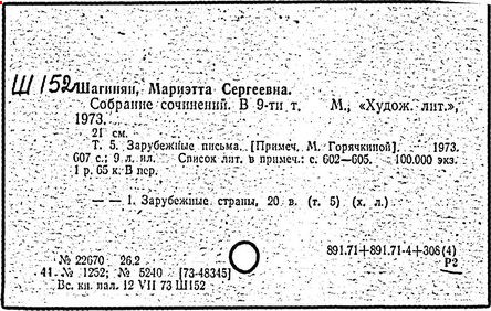 В это же время Мариэтта Шагинян увлеклась творчетвом Гёте, и в 1914 году на 10 дней поехала в Веймар. «Это путешествие за десять дней до 1 августа 1914 года было последним этапом культурнического идолопоклонства; в него неожиданно ворвалась политика», – записала она потом в своём дневнике. По дороге обратно в Россию, будучи проездом в Цюрихе, она написала очерковую книгу «Путешествие в Веймар».