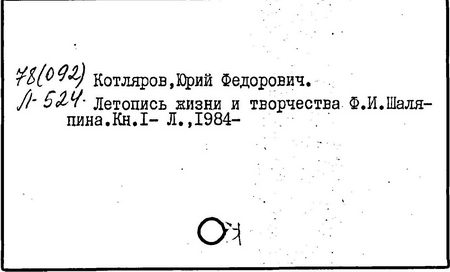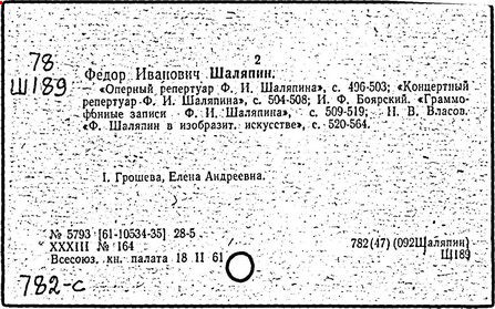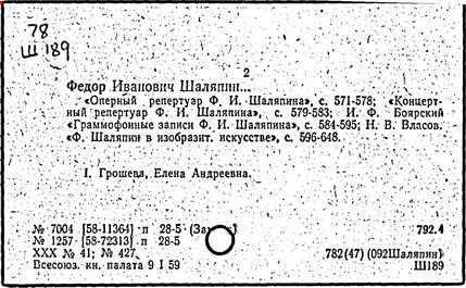 Литература: Старк Э., Шаляпин, Пг., 1915; его же, Ф. И. Шаляпин (К двадцатипятилетию артистич. деятельности), "Аполлон", 1915, No 10; Асафьев Б. В., Шаляпин, в сб.: Советская музыка, сб. 4, М.-Л., 1945; Залкинд Г., Рисунки Ф. И. Шаляпина, "Театральный альманах", кн. 3 (5), М., 1946; Янковский М., Шаляпин и русская оперная культура, Л.-М., 1947; его же, Ф. И. Шаляпин, М.-Л., 1951, Л., 1972; Стасов В. В., Статьи о Шаляпине, М., 1952; Никулин Л., Федор Шаляпин, М., 1954; Ф. И. Шаляпин (Сб., ред.-сост. Е. А. Грошева), т. 1-2, М., 1957-58; Raскин A., Шаляпин и русские художники, Л.-М., 1963; Коллар В., 187 дней из жизни Шаляпина, Горький, 1967; Коровин К. A., Шаляпин. Встречи и совместная жизнь, в кн.: Константин Коровин вспоминает..., М., 1971; Дмитриевский В., Великий артист, Л., 1973; Федор Иванович Шаляпин (Сб., ред.-сост. Е. А. Грошева), т. 1-3, М., 1976-1979; Feschotte J., Ce gйant, F. Chaliapine, P., 1968; Goury J., F. Chaliapine, P., 1970 (с дискографией); Cosma V., Saliapin оn Romвnia, "Muzica", 1973, No 2.