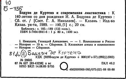 Литература: И. А. Бодуэн де Куртенэ. М., 1960; Леонтьев А. А., H. A. Бодуэн де Куртенэ и его учение о языке, Русский язык в школе, 1965, № 2; Бодуэн де Куртенэ и современная лингвистика, Каз., 1989.