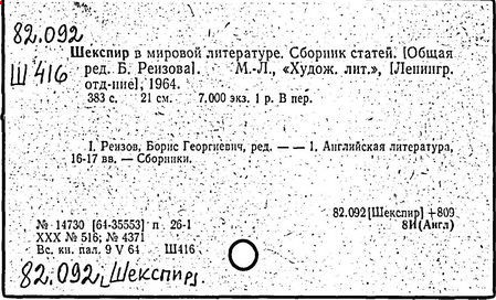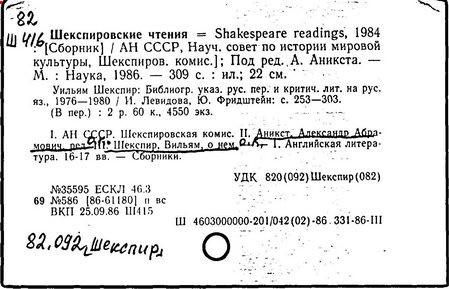 др. ]; Рос. АН, Науч. совет по истории мировой культуры, Шекспир.