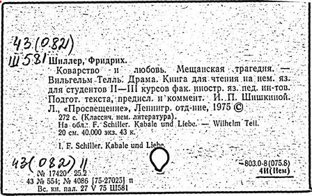 немецкий поэт, драматург, теоретик искусства, историк. Выдающийся представитель Просвещения в Германии, один из основоположников немецкой литературы нового времени. Родился в Марбахе на Неккаре. Сын фельдшера, офицера на службе вюртембергского герцога. Воспитывался в религиозно-пиетистической атмосфере, отозвавшейся в его ранних стихах. Окончив латинскую школу в Людвигсбурге (1772 г.), Шиллер по приказу герцога Карла Евгения был зачислен в военную школу (так называемая Карлова школа), переименованную затем в академию, где занимался на юридическом, потом на медицинском отделении. В академии Шиллер познакомился с моралистической философией А. Фергюсона и А. Шефтсбери, с идеями английских и французских просветителей Дж. Локка, Ш. Л. Монтескьё, Вольтера, Ж. Ж. Руссо, с творчеством У. Шекспира, Лессинга, произведениями поэтов "Бури и натиска". На формирование общественно-политических взглядов Шиллера повлияли и немецкая антифеодальная публицистика, и освободительное движение в Америке. По окончании академии (1780 г.) был назначен полковым врачом в Штутгарт. К этому времени им была завершена первая трагедия "Разбойники" (издание 1781 г., постановка 1782 г.), в которой выразился протест против феодальных порядков в Германии. Известная декларативность главного героя и компромиссность финала не помешали тому, что впоследствии трагедия воспринималась как боевое, революционное произведение. В Штутгарте Шиллер выпустил поэтическую "Антологию на 1782 год", большинство стихов которой сочинено им самим, создал драму из итальянской истории эпохи Возрождения "Заговор Фиеско в Генуе" (1783 г.). За самовольную отлучку из полка в Мангейм на представление "Разбойников" подвергся аресту и запрету писать что-либо, кроме медицинских сочинений, что вынудило Шиллера бежать из владений герцога. Поселился сначала в деревушке Бауэрбах, где закончил драму "Луиза Миллер" (впоследствии названа "Коварство и любовь"), затем в Мангейме. В 1785 г. переехал в Лейпциг, потом в Дрезден.