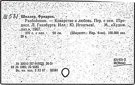 Шиллер "Разбойники" [Текст]: урок в VII кл.