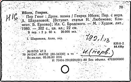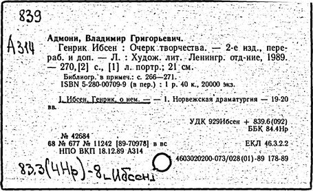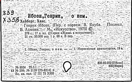 Литература: Брандес Г. Генрик Ибсен // Собр. соч. – 2 изд. – T. 1. – СПб., 1906; Адмони В. Г. Генрик Ибсен. М., 1956; Gran G. Henrik Ibsen. Liv og vaerker, bd. 1 – 2. Christiania, 1918; Koht H. Henrik Ibsen. Eit diktarliv, bd. 1 – 2. Oslo, 1954; Heiberg H. “… født til kunstner”. Et Ibsen-portrett. Oslo, 1967; Dániel A. Ibsen. Budapest, 1966; Meyen F. Ibsen-Bibliographie. Braunschweig; Berlin; Hamburg, 1928; Tedford I. Ibsen-bibliography 1928-1957. Oslo; Bergen, 1961.
