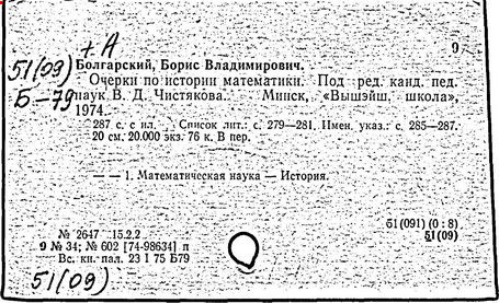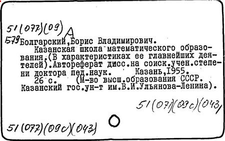 Литература: Б. В. Болгарский, «Математика в школе» , 1980, № 4.