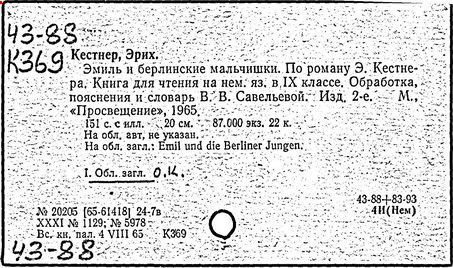 на нем. яз. в 9 кл./ Э. Кестнер; Обраб. В.В. Савельевой.