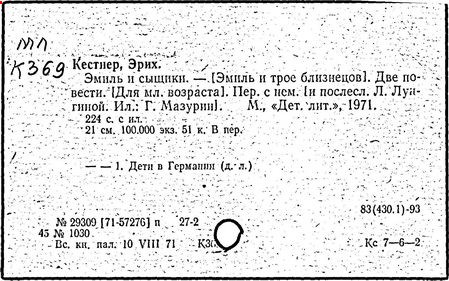 также: E. Kastner. Emil und die Detektive. -ISBN 5-89815-339-X