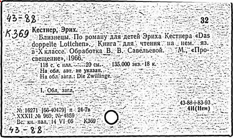 детей Э.Кестнера "Das doppelte Lottchen": Кн. для чтения