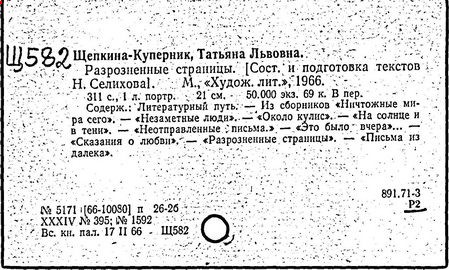 русская советская писательница, переводчик, заслуженный деятель искусств РСФСР (1940 г.). Правнучка актёра М. С. Щепкина. В 1892 г. выступила как драматург. Проза Щепкиной-Куперник (сборники рассказов "Труждающиеся и обременённые", "Около кулис", оба – 1903 г.; "Это было вчера...", 1907 г., уничтожен цензурой, и др.) по своей идейной направленности близка демократической литературе конца 19 - начала 20 вв. Автор стихотворения "От павших твердынь Порт-Артура" (1905 г.), ставшего народной песней, и многих др. Писала путевые очерки, мемуары. Наиболее ценная часть литературного наследия Щепкиной-Куперник - переводы западноевропейской классики (Э. Ростан, Лопе де Вега, Мольер, Гольдони, Р. Б. Шеридан и др.).