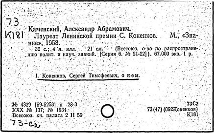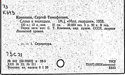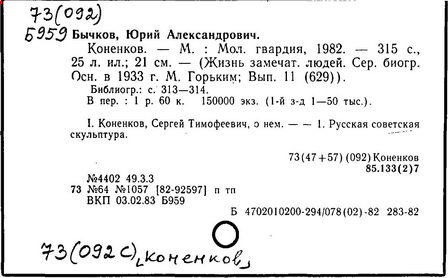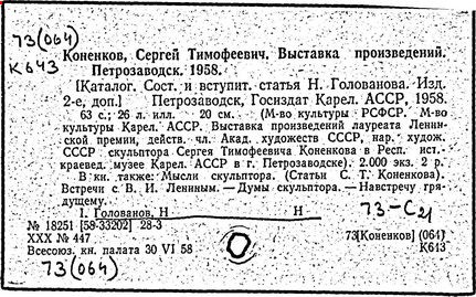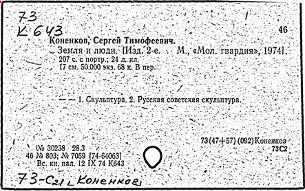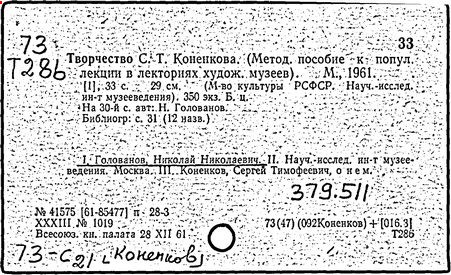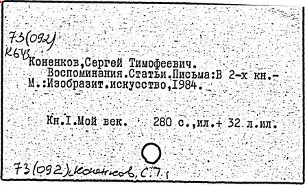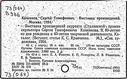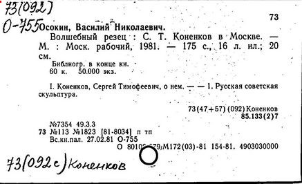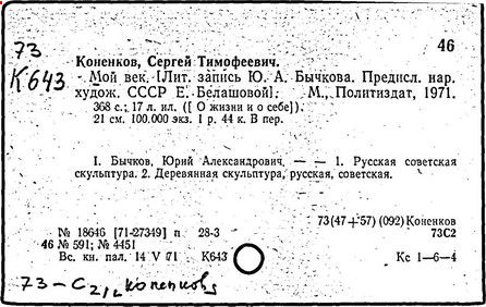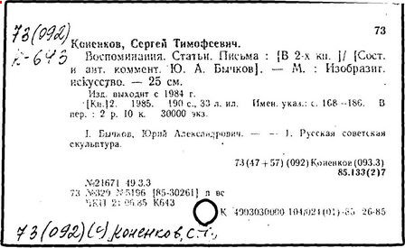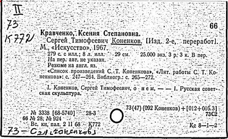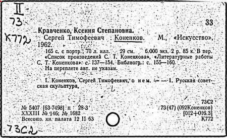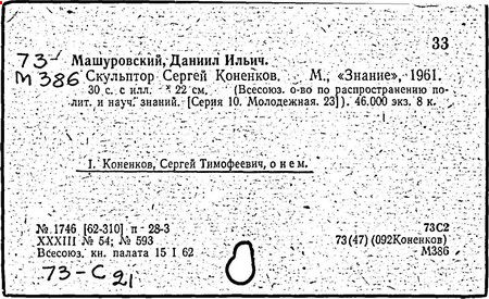 Литература: Каменский А. Коненков. [М., 1962]; Кравченко К. С. Т. Коненков. М., 1967.