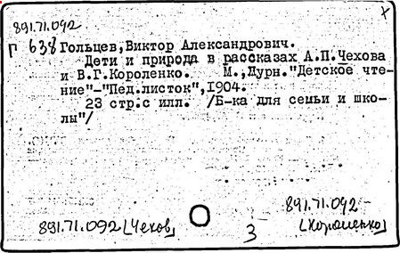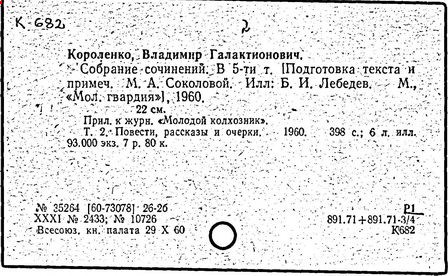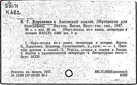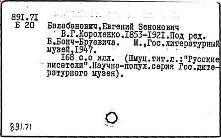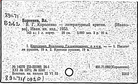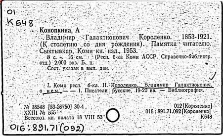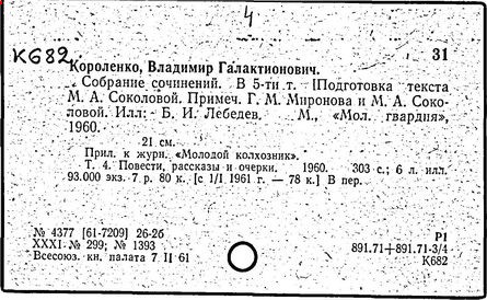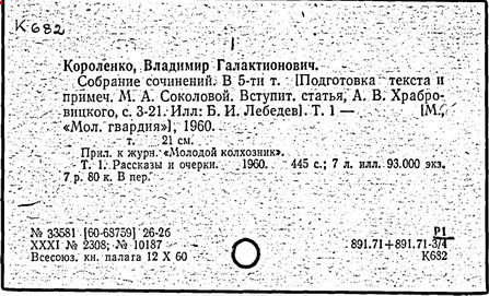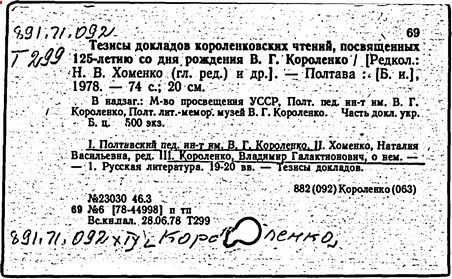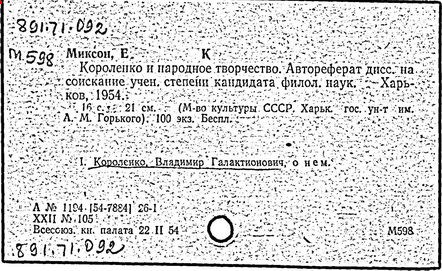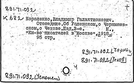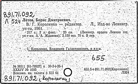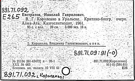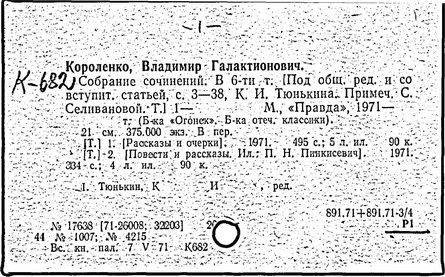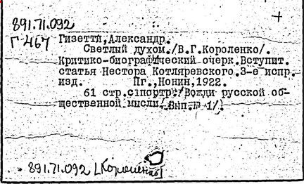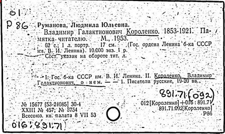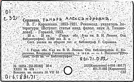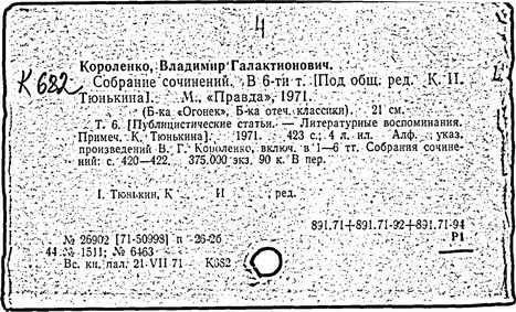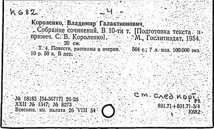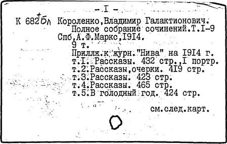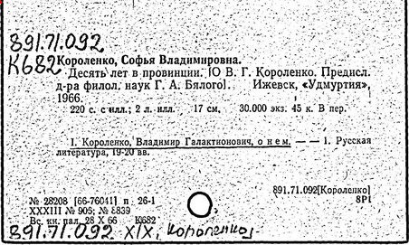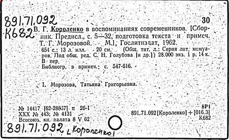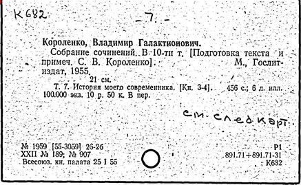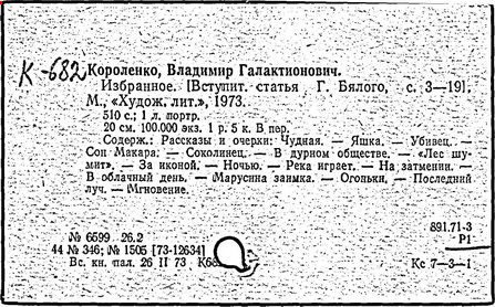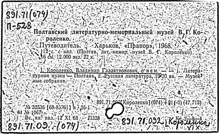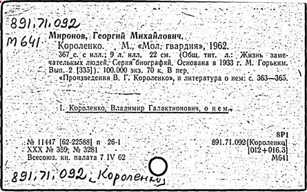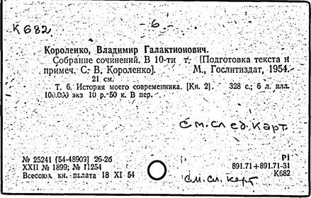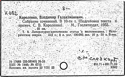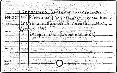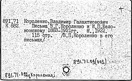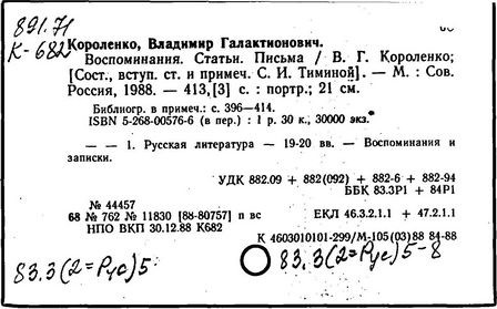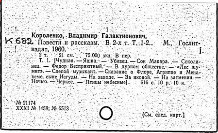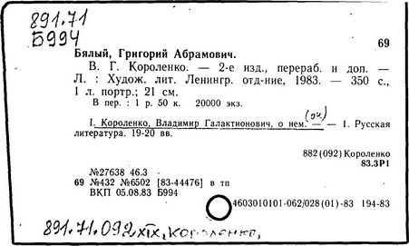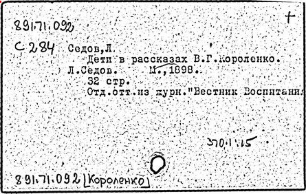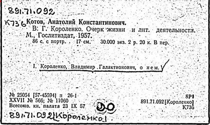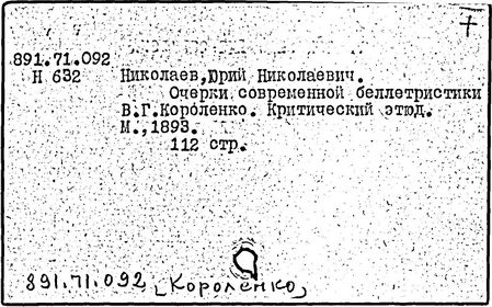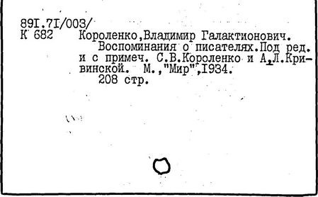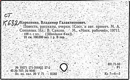 Литература: Миронов Г.М. Короленко. М., 1962; В.Г.Короленко в воспоминаниях современников. М., 1962; Ростов Н. В.Г.Короленко. М., 1965; Короленко В.Г. Собрание сочинений, тт. 1-6. М., 1971; Короленко В.Г. История моего современника, кн. 1-2. Л., 1976; Бялый Г.А. В.Г.Короленко, 2-е изд. Л., 1983.