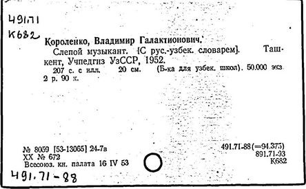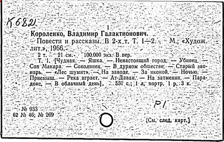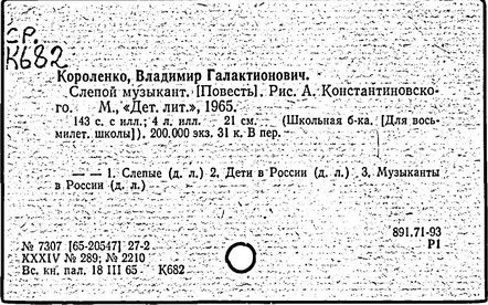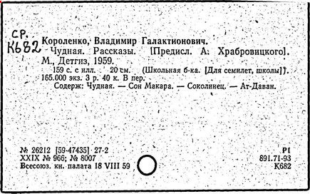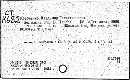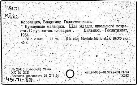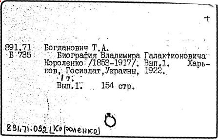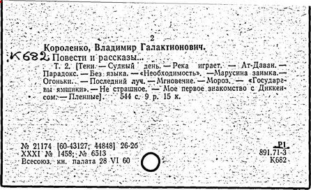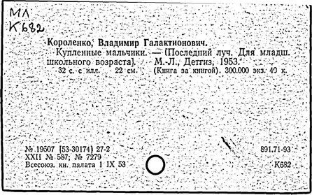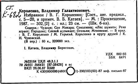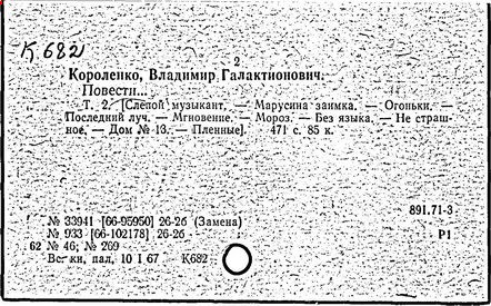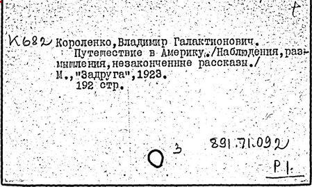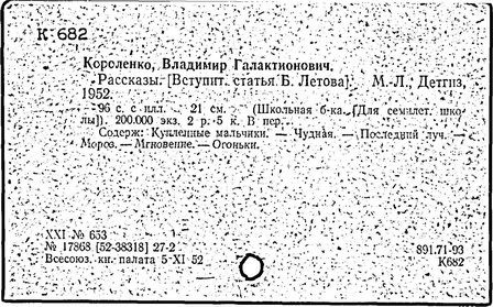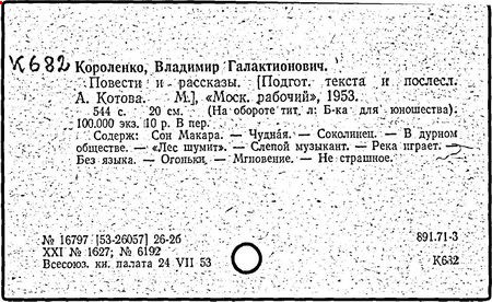 русский писатель. Родился 27 июля 1853 в Житомире. Был смолоду вовлечен в политическую деятельность, что привело к его исключению из Петровской земледельческой академии в Москве. В 1879 г. Короленко был сослан в Сибирь на шесть лет за участие в народническом движении. По возвращении в Россию Короленко жил в Нижнем Новгороде, Санкт-Петербурге и Полтаве. Октябрьскую революцию принял враждебно, но против большевиков активно не выступал. Короленко начал писать еще до ссылки, но признание пришло к нему лишь после публикации рассказа «Сон Макара» (1885 г.), фантазии, основанной на якутской мифологии. Его важнейшее произведение, автобиографическая «История моего современника», было полностью опубликовано посмертно. Наиболее известными сочинениями Короленко в области художественной прозы являются рассказы и повести «Лес шумит», «Слепой музыкант», «В дурном обществе», где нарисован запоминающийся образ его строгого, но справедливого отца, житомирского судьи; «Судный день» и «Без языка», новелла, вдохновленная путешествием Короленко в Америку в 1893 и описывающая мытарства русского иммигранта в Нью-Йорке. Короленко был также выдающимся публицистом и отдавал много сил кампаниям по оказанию помощи голодающим и упразднению смертной казни, воинской повинности и дискриминации по национальному признаку. Умер Короленко в Полтаве 25 декабря 1921.