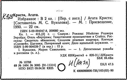 книгой А. Кристи "Избранная детективная проза"