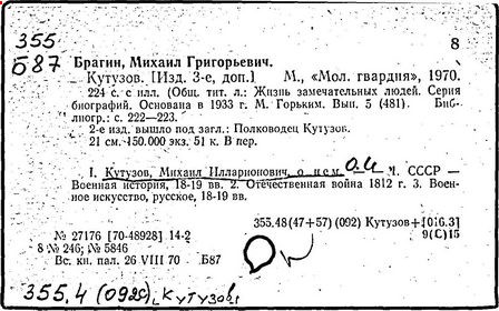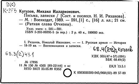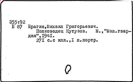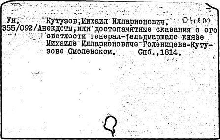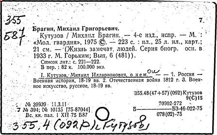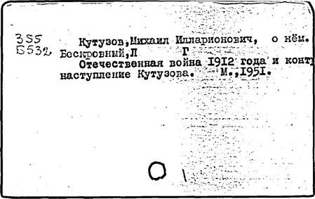 Литература: Гуляев Ю.Н., Солгаев В.Т. Фельдмаршал Кутузов. М., 1994 Брамин М.Г. Кутузов. М., 1995