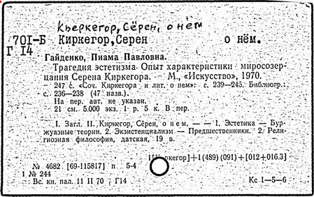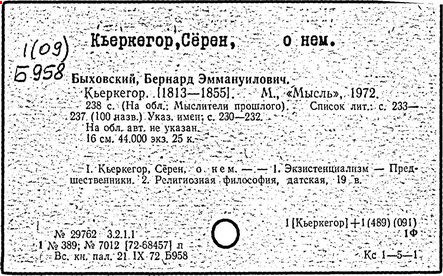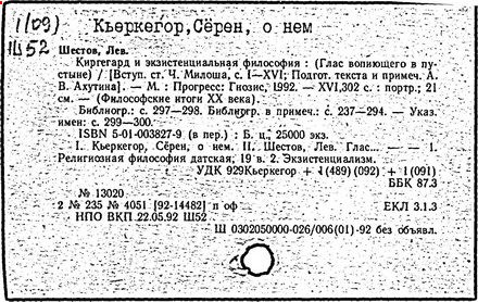 Литература: Шестов Л. Киргегард и экзистенциальная философия. Париж, 1939; Гайденко П. Трагедия эстетизма. Опыт характеристики миросозерцания С. Киркегора. М., 1970; Быховский Б. Э. Кьеркегор. М., 1972; Haecker Th., S. Kierkegaard. München, 1913; Przywara Е. Das Geheimnis Kierkegaards. München, 1929; Dempf A. Kierkegaards Folgen. Leipzig, 1935; Alien Е. L., Kierkegaard: his life and thought. New York; London, 1936; Wahl J. Etudes Kierkegaardiennes. – 2 ed. – Paris, 1949; Kassner R. S. Kierkegaard. Heidelbrunn, 1949; Hohlenberg J. F. S. Kierkegaard. Paris, [1956]; Jolivet R. Aux sources de l'existentialisme chrétien. Kierkegaard. Paris, [1956]; Anz W. Kierkegaard und der deutsche Idealismus. Tübingen, 1956; Lowrie W. Kierkegaard, vol. 1-2. New York, [1962]; Heiss R. Die groβen Dialektiker des 19. Jahrhunderts. Hegel, Kierkegaard, Marx. Köln; Berlin, 1963; Mesnard P. Kierkegaard. – 3 éd. – Paris, 1963; Adorno Th. W. Kierkegaard. Konstruktion des Ästhetischen. – [3 Aufl.]. – Frankfurt/Main, 1966; Malaquais J. S. Kierkegaard: foi et paradoxe. [Paris, 1971]; Jørgensen A. Søren Kierkegaard-litteratur. 1961-1970. [Aarhus, 1971].