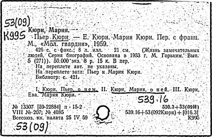 Литература: Кюри М., Пьер Кюри..., перевод с французского, М., 1968; Шпольский Э. В., Жизнь и деятельность Пьера Кюри, "Успехи физических наук", 1956, т. 58, в. 4; Старосельская-Никитина О. А., Жизнь и творчество Пьера Кюри, "Труды института истории естествознания и техники", 1957, т. 19.