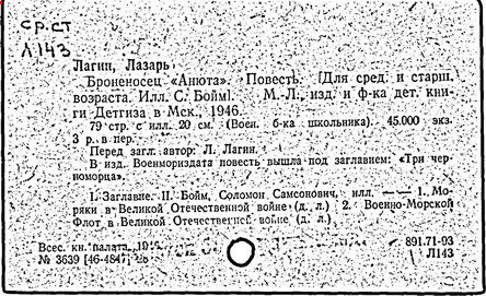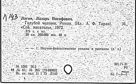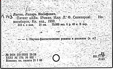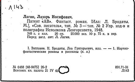 В послевоенное время опубликованы повесть «Броненосец "Анюта"» (1945 г.), памфлеты «Патент АВ» (1947 г.), «Остров разочарования» (1951 г.). Из других публикаций Лагина (с 1956 г. псевдоним официально становится фамилией писателя) следует упомянуть памфлеты «Атавия Проксима» (1956 г.), «Съеденный архипелаг» и «Белокурая бестия» (оба – 1963 г.), а также повесть «Майор Велл Эндью» (1962 г.), своеобразную вариацию на тему «Войны миров» Г. Уэллса. Не слишком удачен роман «Голубой человек», писавшийся с 1957 г. по 1964 г. и повествующий о путешествии из СССР пятидесятых годов в царскую Россию.