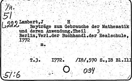 Литература: Barthel E., Johann Heinrich Lambert, «Archiv für Geschichte der Mathematik, der Naturwissenschaften und der Technik», 1929, Bd 11, Н. 1, 2.