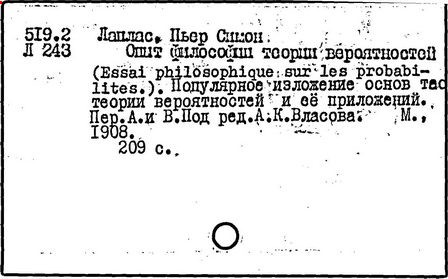 Научное наследие Лапласа относится к области небесной механики, математики и математической физики, фундаментальными являются работы Лапласа по дифференциальным уравнениям, в частности по интегрированию методом "каскадов" уравнений с частными производными. Введённые Лапласом шаровые функции имеют разнообразные применения. В алгебре Лаплас принадлежит важная теорема о представлении определителей суммой произведений дополнительных миноров. Для разработки созданной им математической теории вероятностей Лаплас ввёл так называемые производящие функции и широко применял преобразование, носящее его имя. Теория вероятностей явилась основой для изучения всевозможных статистических закономерностей, в особенности в области естествознания. До него первые шаги в этой области были сделаны Б. Паскалем, П. Ферма, Я. Бернулли. Лаплас привёл их выводы в систему, усовершенствовал методы доказательств, сделав их менее громоздкими; доказал теорему, носящую его имя, развил теорию ошибок и способ наименьших квадратов, позволяющие находить наивероятнейшие значения измеренных величин и степень достоверности этих подсчётов. Классический труд Лапласа "Аналитическая теория вероятностей" издавался трижды при его жизни - в 1812 г., 1814 г. и 1820 г.; в качестве введения к последним изданиям была помещена работа "Опыт философии теории вероятностей" (1814 г.), в которой в популярной форме разъясняются основные положения и значение теории вероятностей.