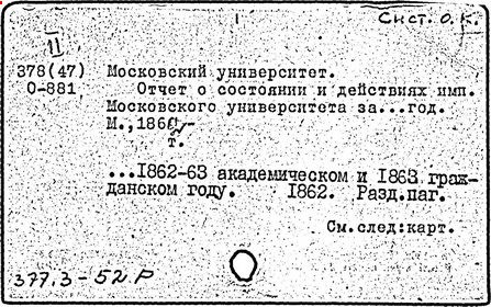 Новый этап в жизни университета начался после падения крепостного права в 1861 году и вступления России на путь капитализма. Университетский устав 1863 года отражал общий курс правительства на проведение реформ, призванных ускорить развитие страны. По уставу 1863 года увеличивалось количество учебных дисциплин и число преподавателей. Большое внимание уделялось организации практических и лабораторных занятий, семинаров. Была восстановлена фактически уничтоженная в годы николаевского царствования выборность ректора и деканов. На четырех факультетах университета — историко-филологическом, физико-математическом, юридическом и медицинском — учились около 1500 студентов, большинство из которых принадлежало к разночинцам. В дореволюционной России профессора Московского университета много сделали для укрепления связи науки и практики. Университетские ученые писали учебники для школ. Немало воспитанников университета работали учителями, представляя собой наиболее квалифицированную часть русского учительства. По инициативе и при содействии университета во второй половине XIX–начале XX века возникли известные московские музеи: Политехнический, Исторический, Зоологический, Антропологии, Изящных искусств (ныне Музей изобразительных искусств им. А.С. Пушкина); были открыты Ботанический сад и Зоологический сад (Московский зоопарк).