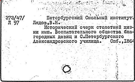 Литература: Черепнин Н. П. Императорское Воспитательное общество благородных девиц, т. 1-3. СПБ - П., 1914-15; Озерская Ф. С. Женское образование // Очерки истории школы и педагогической мысли народов СССР в XVIII – первой половине XIX вв. М., 1973.