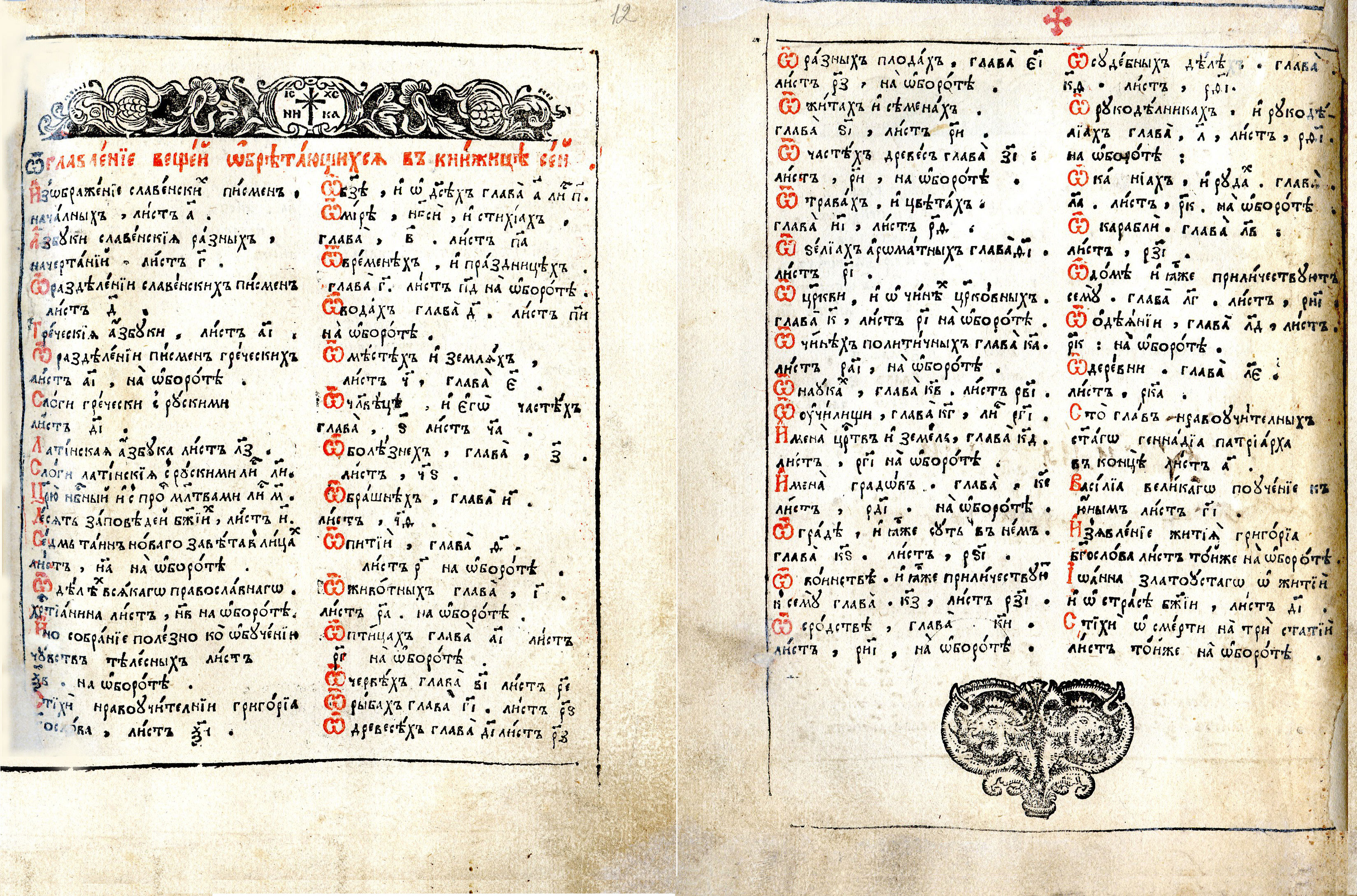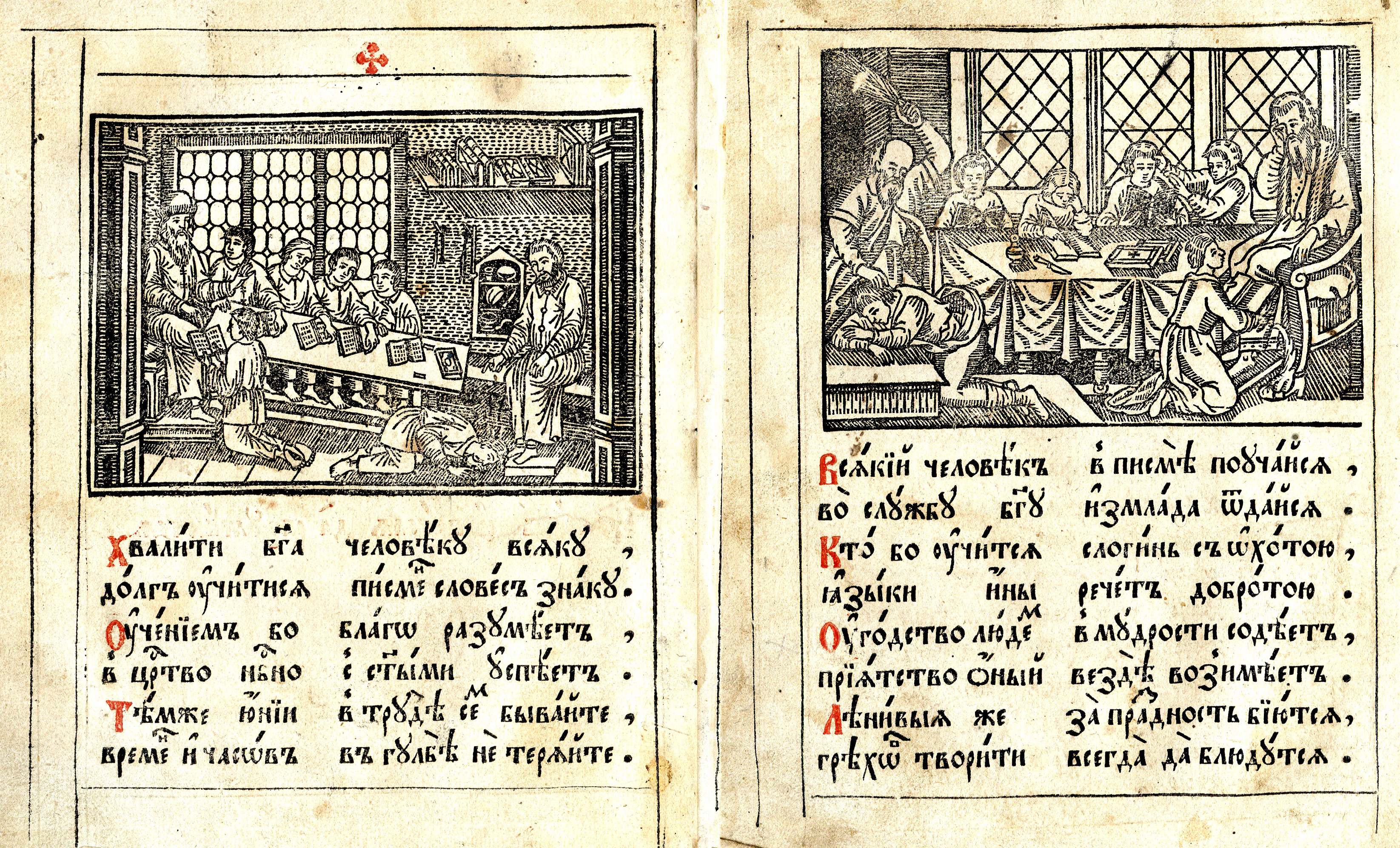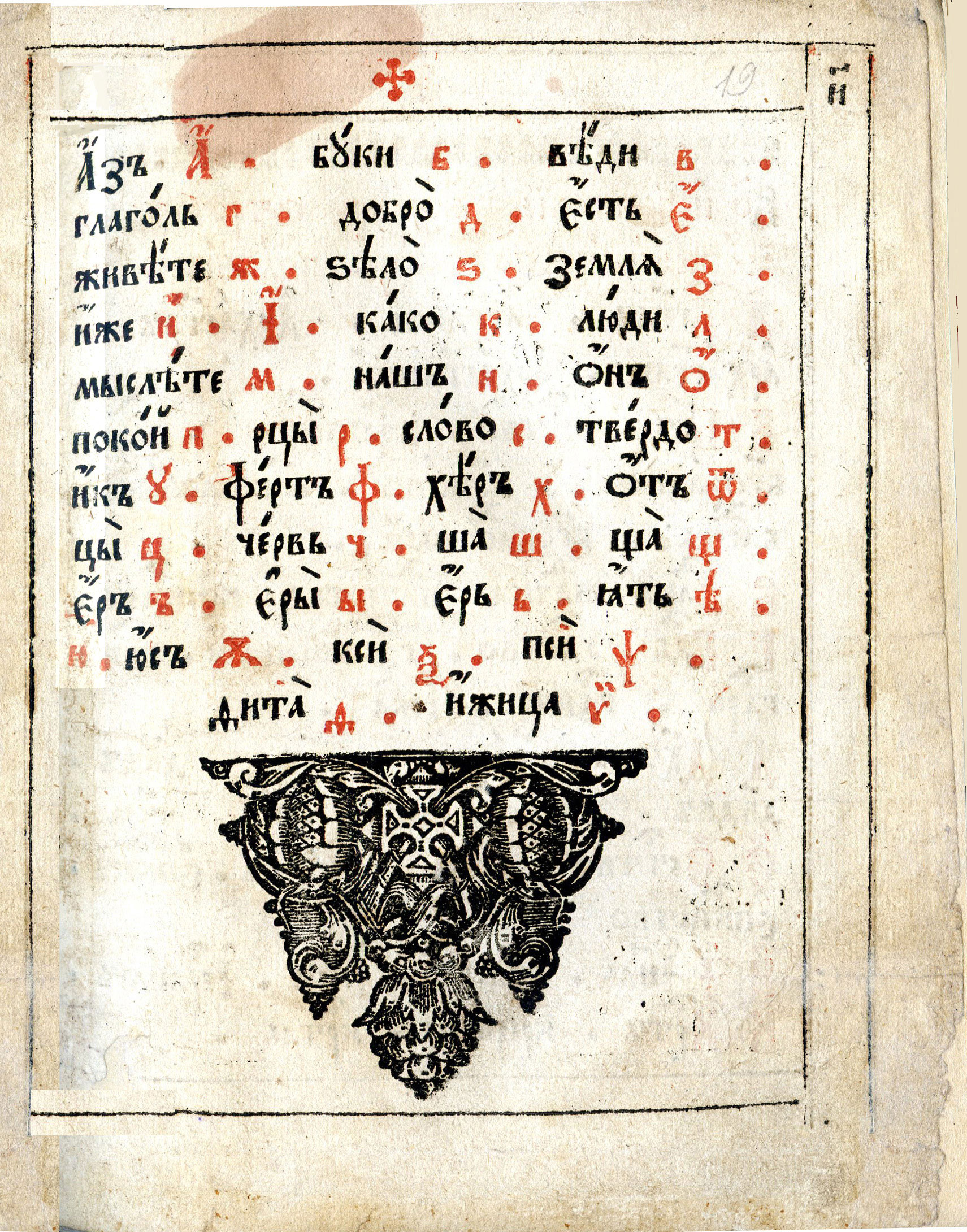 На Московском печатном дворе он провел модернизацию типографии, увеличил количество выпускаемых книг, в том числе книг гражданского шрифта, издавал много книг богослужебного, светского, научного назначения, в том числе ряд учебных книг, необходимых для начального и систематического образования. Самая известная из учебных книг – «Букварь славенскими, греческими, римскими писмены учитися хотящим и любомудрие в пользу спасительную обрести тщащимся…». Это толстая, в 320 страниц, книга, в которой впервые появляется пространный титульный лист, со славословием Бога и Государя, из которого мы вычленяем заглавие книги: «Во славу Бога Отца и святого Духа, Повелением нашего царя и Великого князя ПЕТРА Алексеевича всея великой, и малой, и белой России самодержца, при благороднейшем Государе нашем Царевиче и великом Князе Алексее Петровиче, Благословением же просвещенных архиереев между патриаршеством издается книга букварь славенскими, греческими и римскими писмены учитися хотящим и любомудрие в пользу душеспасительную обрести тщащимся, в царствующем великом граде Москве лета от мироздания 7209 от Рождества же бога слова 1701 месяца иуния» (июня).1 (Рис. 1)