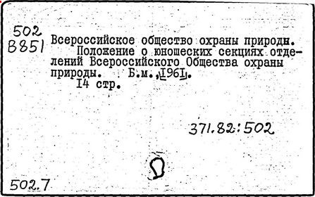 Cтарейшая массовая общественная экологическая организация России, было основано 29 ноября 1924 г. Идею организации Общества одобрили руководители Народного комиссариата просвещения А. В. Луначарский, Н. К. Крупская, М. Н. Покровский.