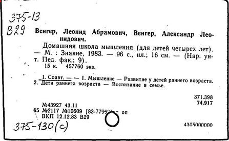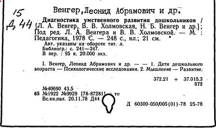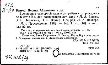 На обороте тит. л. и в вып. дан. авт.: Л.А. Венгер,