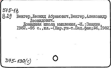 Домашняя школа [Текст]/ Л.А. Венгер, А. Л. Венгер.
