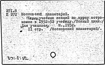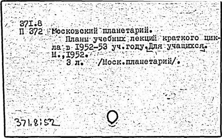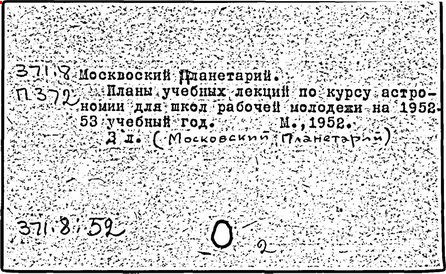 (Садовая-Кудринская улица, 5). Первый в стране «научный театр» построен в 1928 г. по проекту архитекторов М. О. Барща и М. И. Синявского, победивших на конкурсе 1927 г. Был торжественно открыт 5 ноября 1929 г. Лаконичная форма как бы восприняла характер машинерии, обеспечивающей демонстрацию звёздного неба. Основной элемент композиции – приземистый цилиндрический объём демонстрационного зала (на 1500 мест), перекрытый тонкостенным железобетонным параболическим куполом. Подшивной сферический экран, укреплённый на внутренней металлической сетке, образует второй купол под наружной оболочкой здания. Зал диаметром 25 м мог трансформироваться, и часть его пространства превращалась в сцену. Лестницы вынесены в отдельный объём, благодаря чему потоки входящих и выходящих зрителей разделены. Под залом, на первом этаже, – кольцеобразное фойе и подсобные помещения. Реконструкция здания проводилась в 1976 – 1977 гг. (Барщ и Синявский); полотняный демонстрационный экран заменён алюминиевым из перфорированных листов, изменён первоначальный характер входной части здания. В Планетарии читались лекции, сопровождаемые демонстрацией искусственного неба (на полусферическом куполе-экране с помощью специального оптического аппарата) с Солнцем, звёздами, планетами, спутниками, различными космическими аппаратами. С 1934 г. при Планетарии работали детские астрономические кружки, в летнее время – астрономическая площадка и обсерватория.