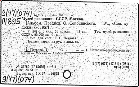 Литература: Гиляровский В. От Английского клуба к Музею Революции. М., 1926; Закс А. Б. Из истории Государственного музея Революции СССР (1924-1934 гг.) // Труды Научно-исследовательского института музееведения", 1963, вып. 10; Центральный ордена Ленина Музей Революции СССР. Путеводитель. М., 1972.