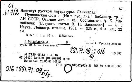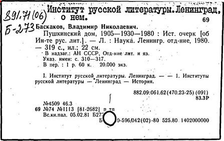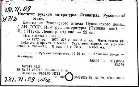 наук СССР. Ин-т русской литературы (Пушкинский дом))