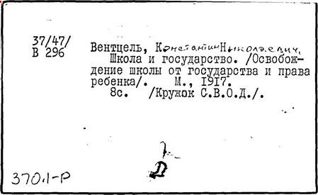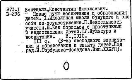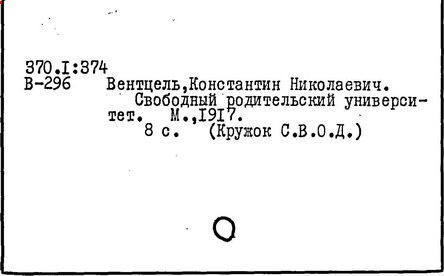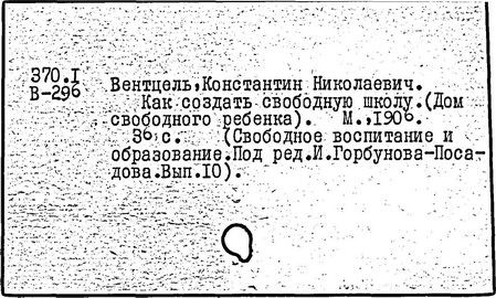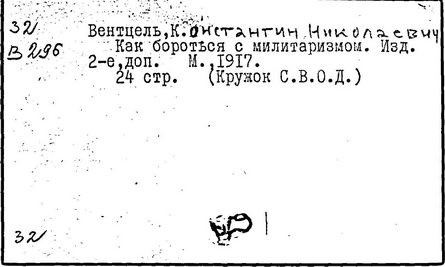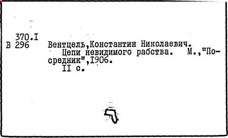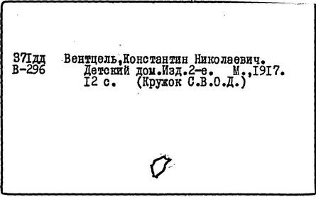 [Текст]/ И. К. Вентцель. - М.: [б. и.], 1918. -16 с. -(Библиотека