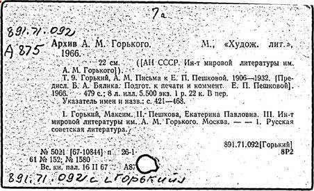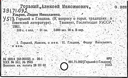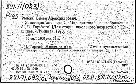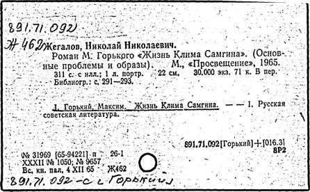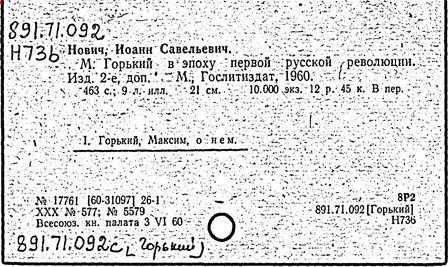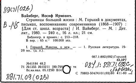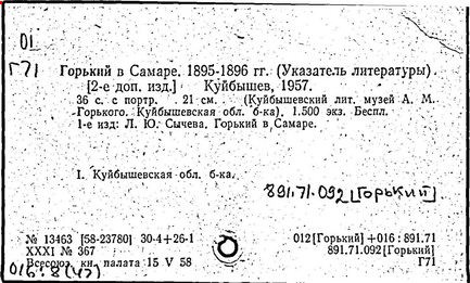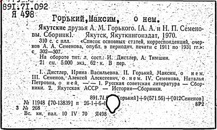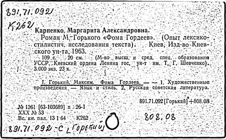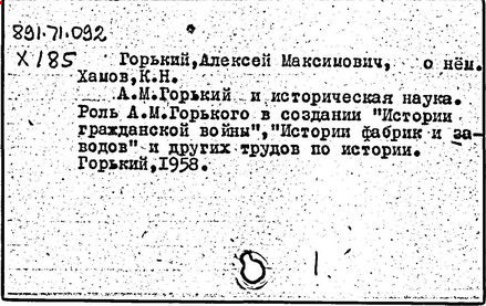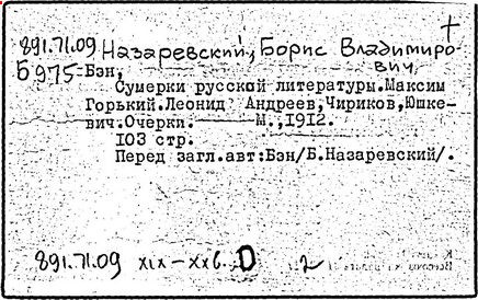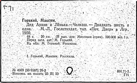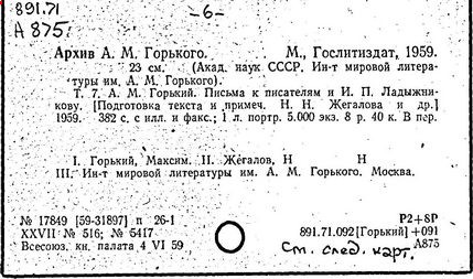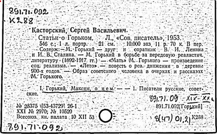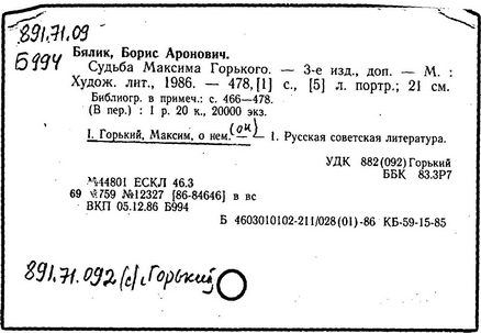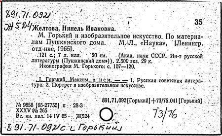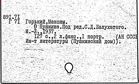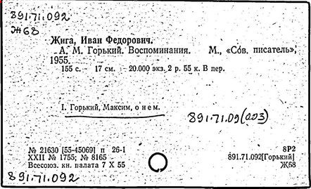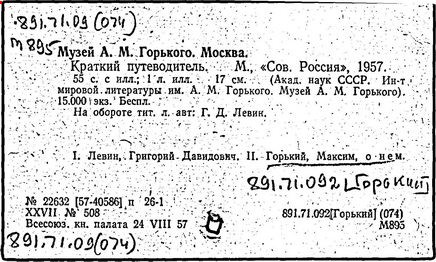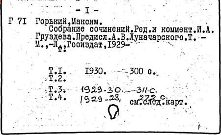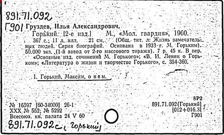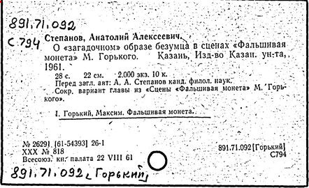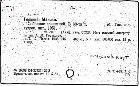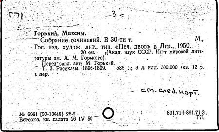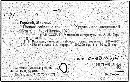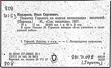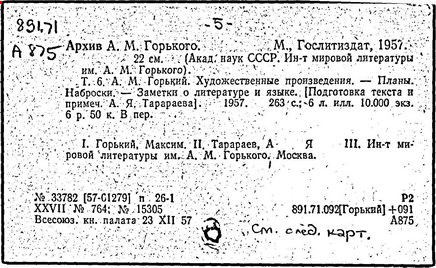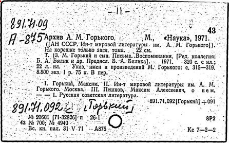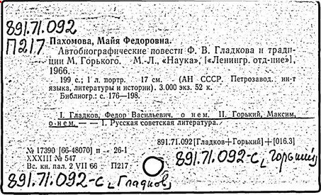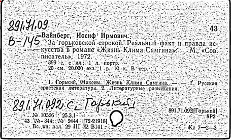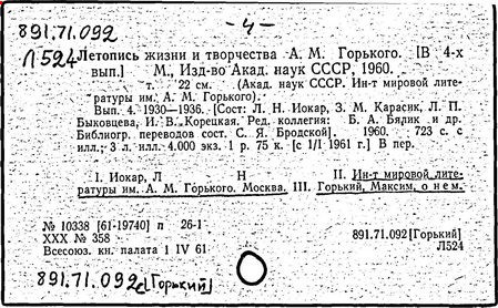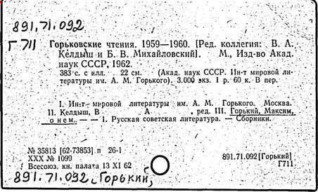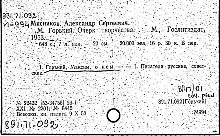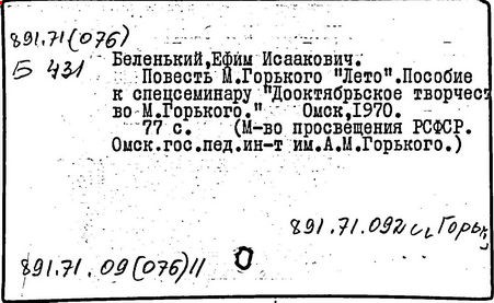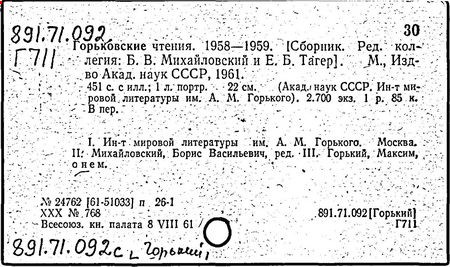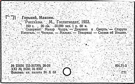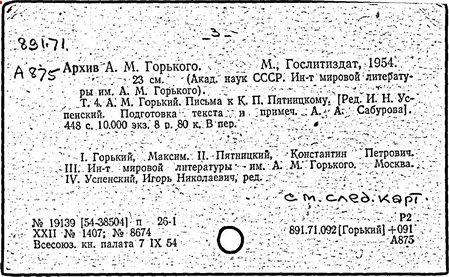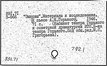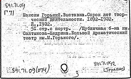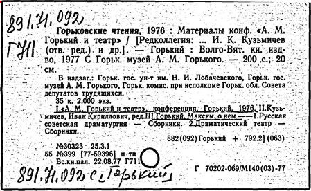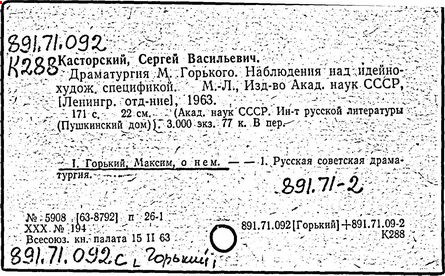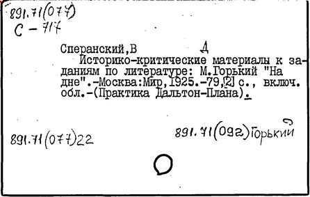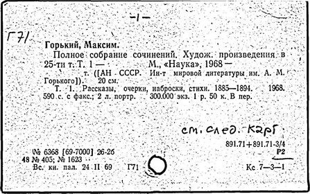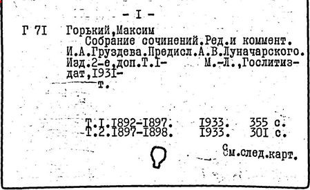 Библиография: Балухатый С. Д. Литературная работа М. Горького. М.; Л., 1936; Описание рукописей М. Горького / под ред. И. П. Ладыжникова и Е. Ф. Розмирович. Т. 1. М.; Л., 1948; Балухатый С. Д. Критика о М. Горьком. 1893-1932. Л., 1934; Балухатый С. Д., Муратова К. Д. Литературная работа М. Горького. Дополнительный список. 1889-1937. М.; Л., 1941; Произведения М. Горького в переводах на иностранные языки: библиогр. указ. М., 1958; Русская литература конца XIX - начала XX века: библиогр. указ. Т. 1. М.; Л., 1963.