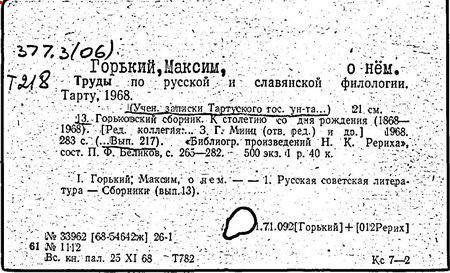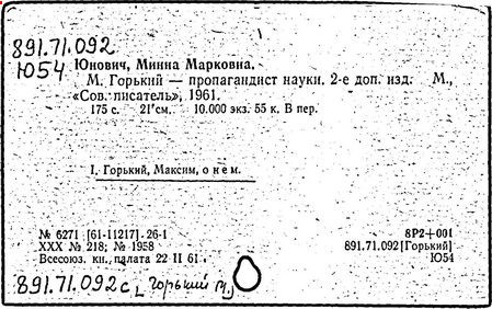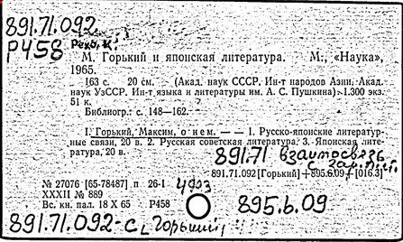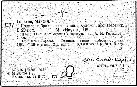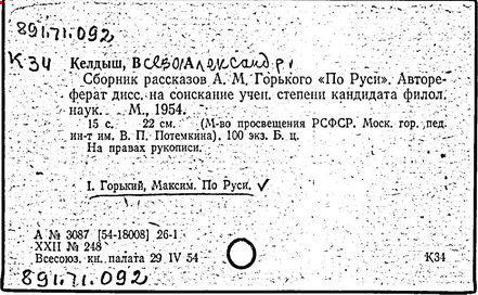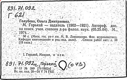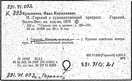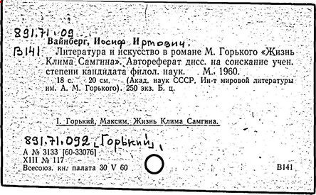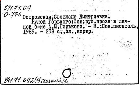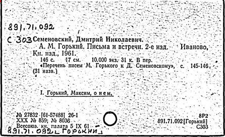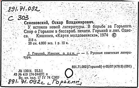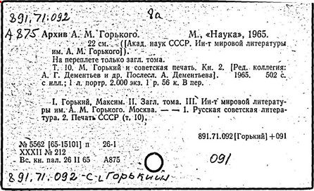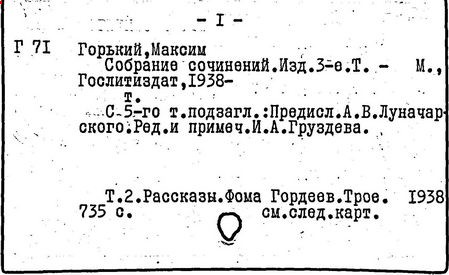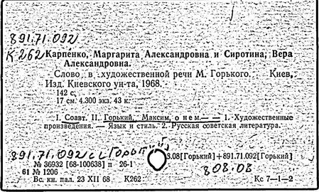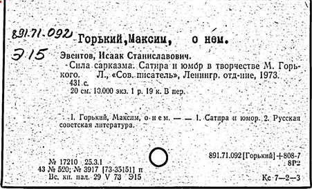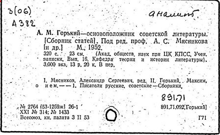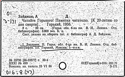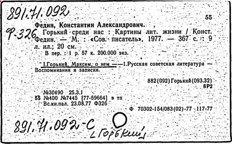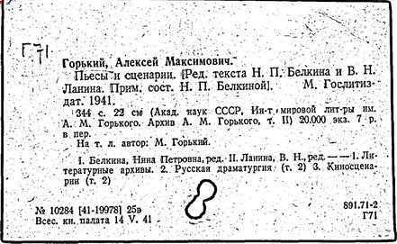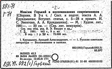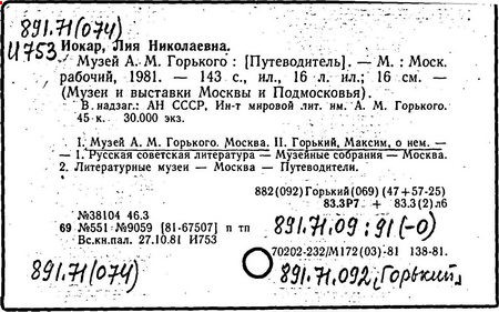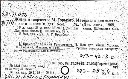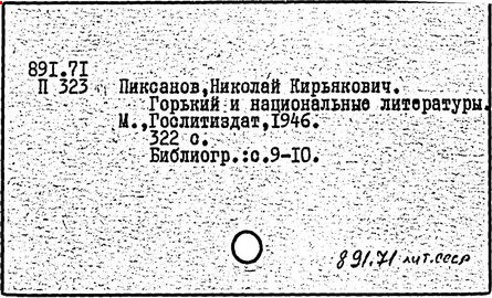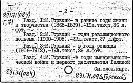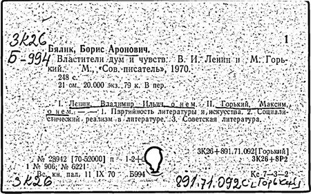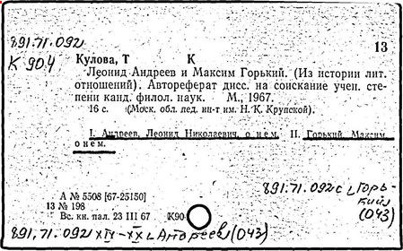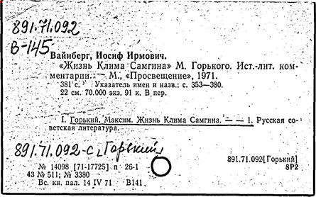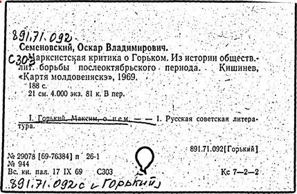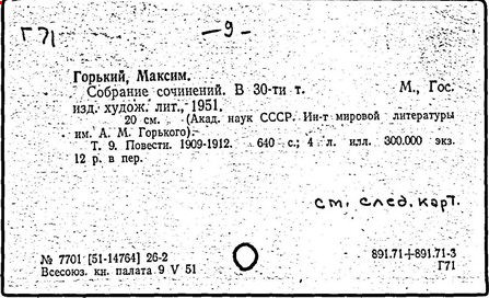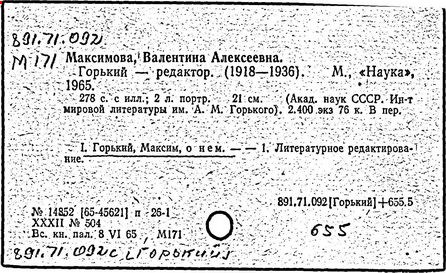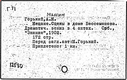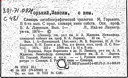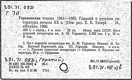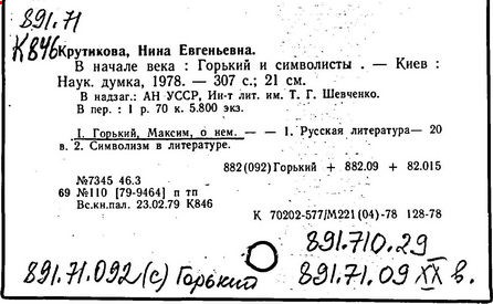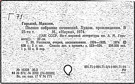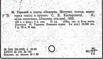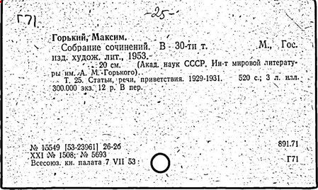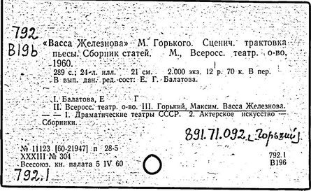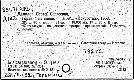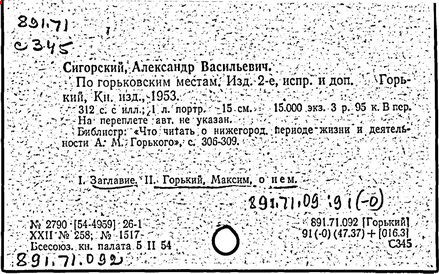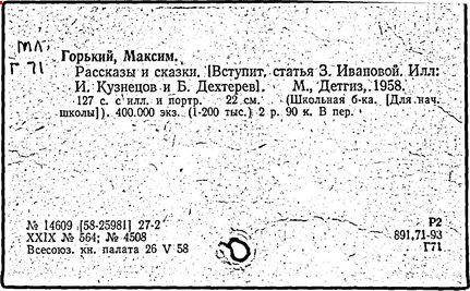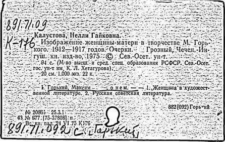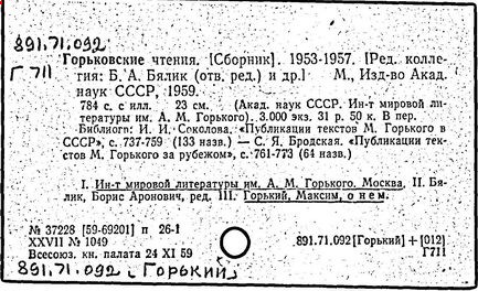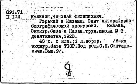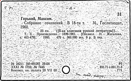 Библиография: Балухатый С. Д. Литературная работа М. Горького. М.; Л., 1936; Описание рукописей М. Горького / под ред. И. П. Ладыжникова и Е. Ф. Розмирович. Т. 1. М.; Л., 1948; Балухатый С. Д. Критика о М. Горьком. 1893-1932. Л., 1934; Балухатый С. Д., Муратова К. Д. Литературная работа М. Горького. Дополнительный список. 1889-1937. М.; Л., 1941; Произведения М. Горького в переводах на иностранные языки: библиогр. указ. М., 1958; Русская литература конца XIX - начала XX века: библиогр. указ. Т. 1. М.; Л., 1963.