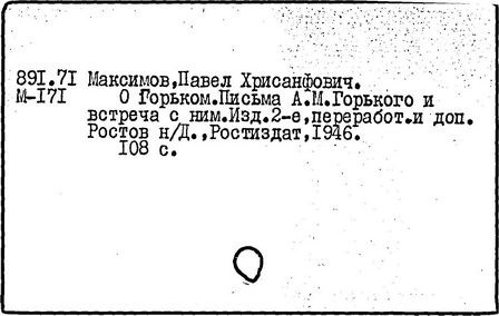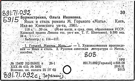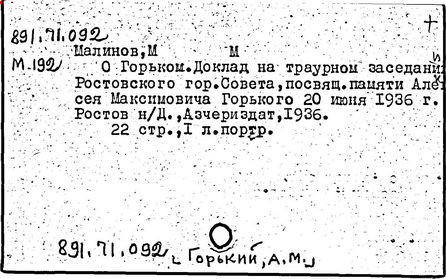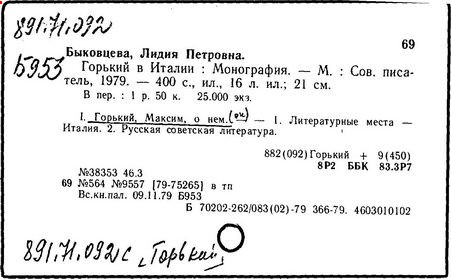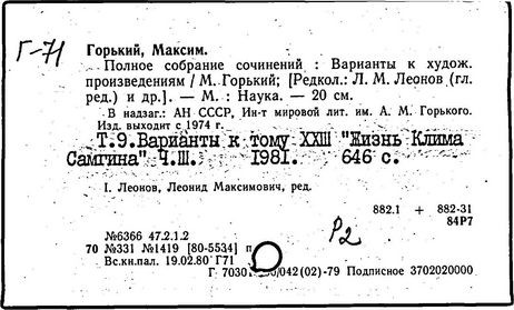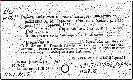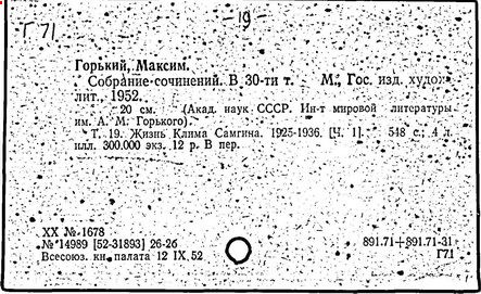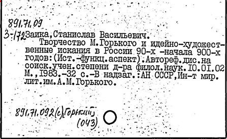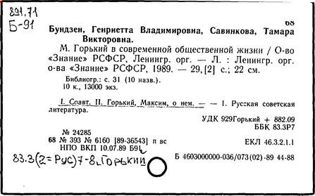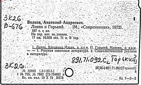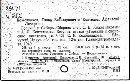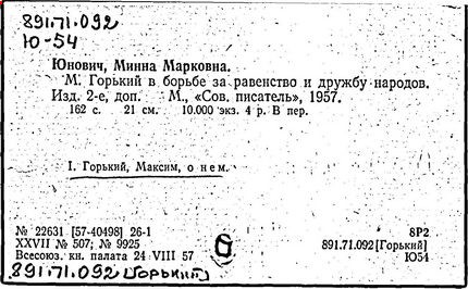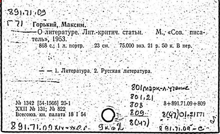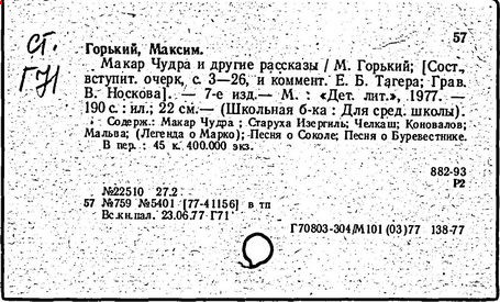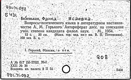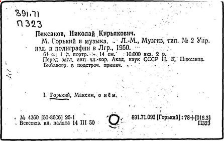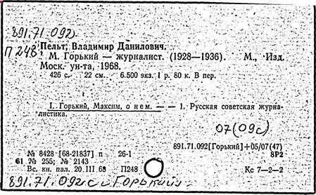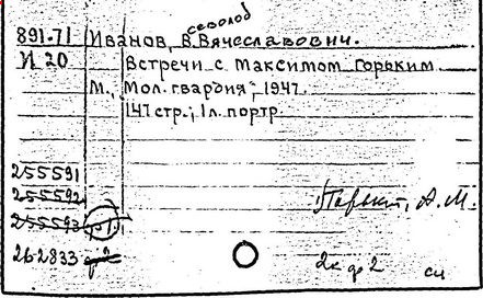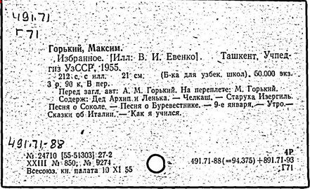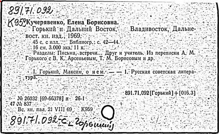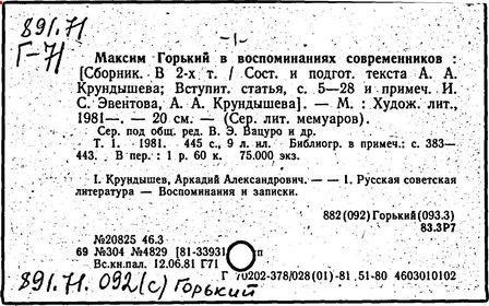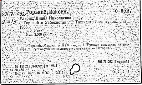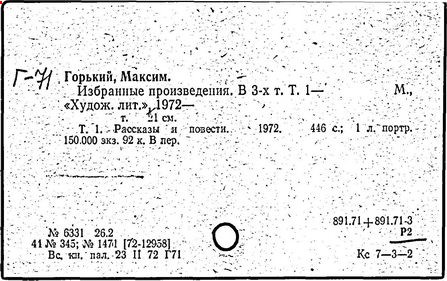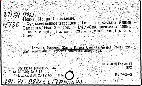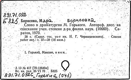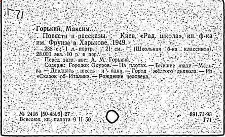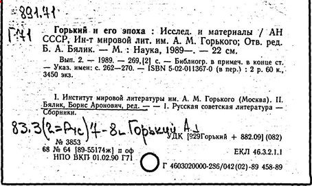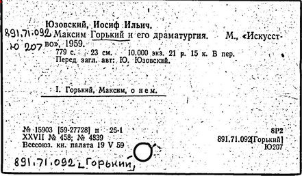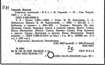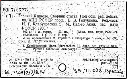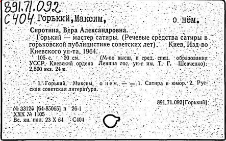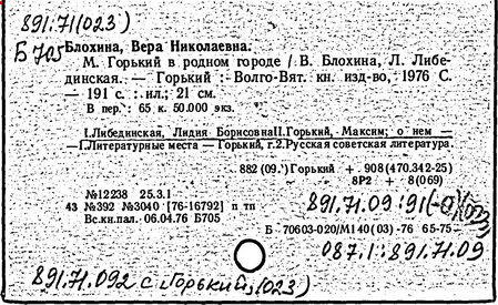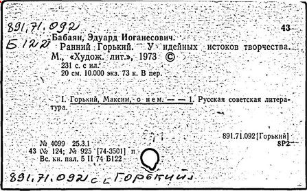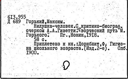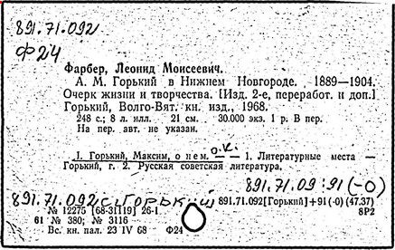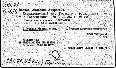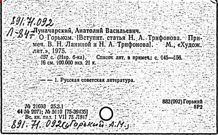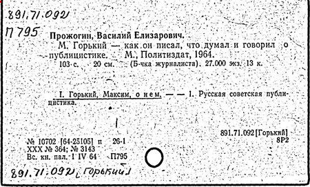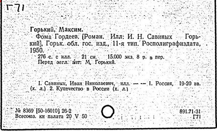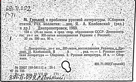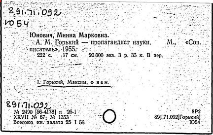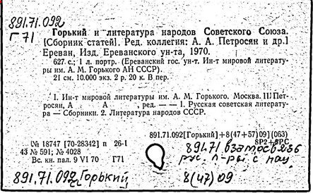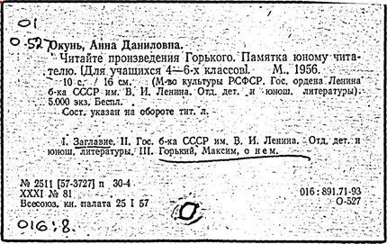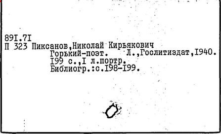 Библиография: Балухатый С. Д. Литературная работа М. Горького. М.; Л., 1936; Описание рукописей М. Горького / под ред. И. П. Ладыжникова и Е. Ф. Розмирович. Т. 1. М.; Л., 1948; Балухатый С. Д. Критика о М. Горьком. 1893-1932. Л., 1934; Балухатый С. Д., Муратова К. Д. Литературная работа М. Горького. Дополнительный список. 1889-1937. М.; Л., 1941; Произведения М. Горького в переводах на иностранные языки: библиогр. указ. М., 1958; Русская литература конца XIX - начала XX века: библиогр. указ. Т. 1. М.; Л., 1963.