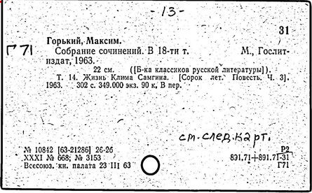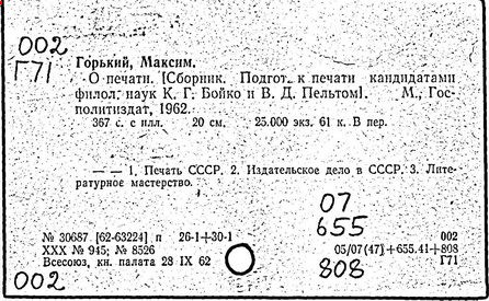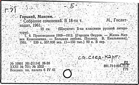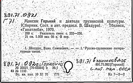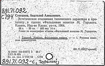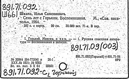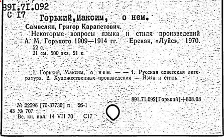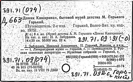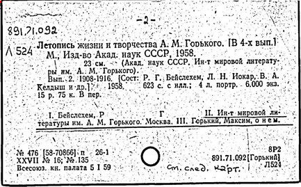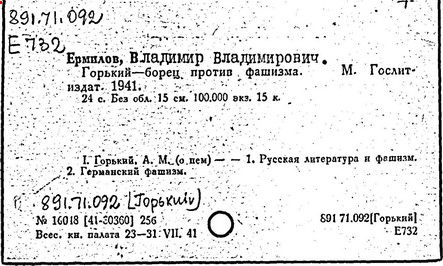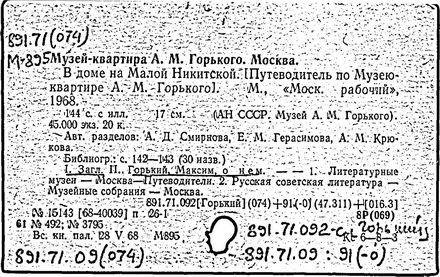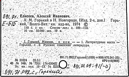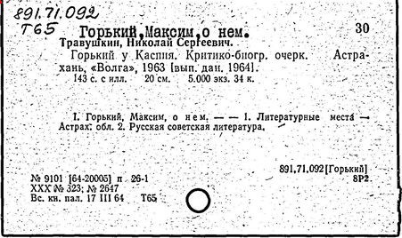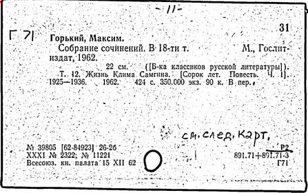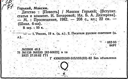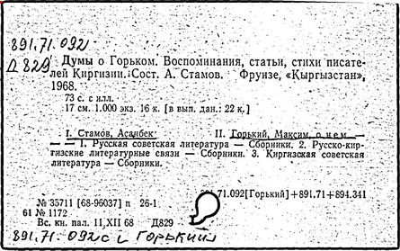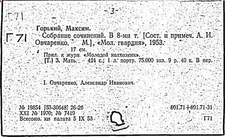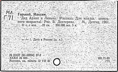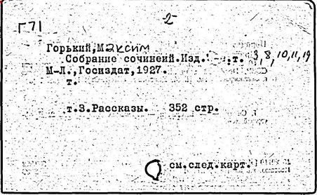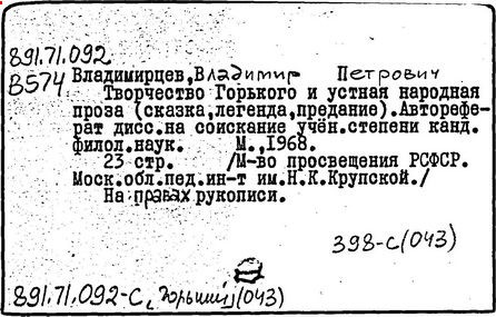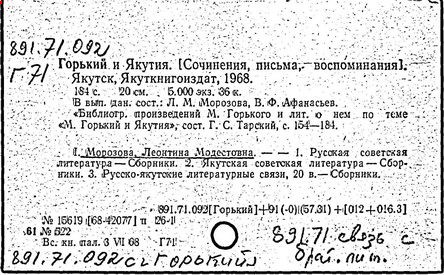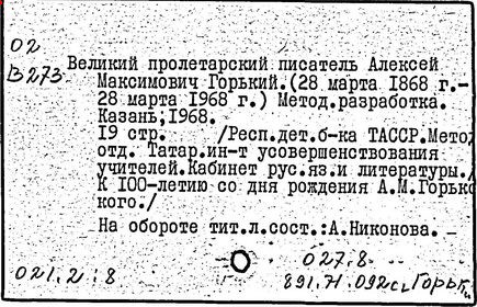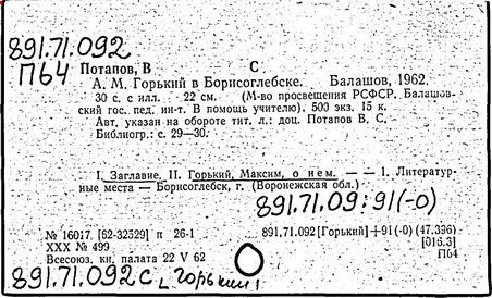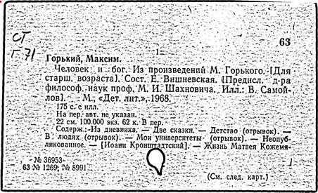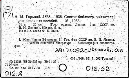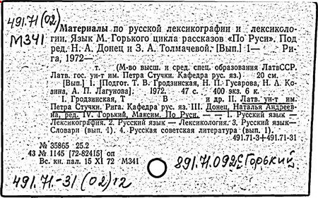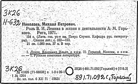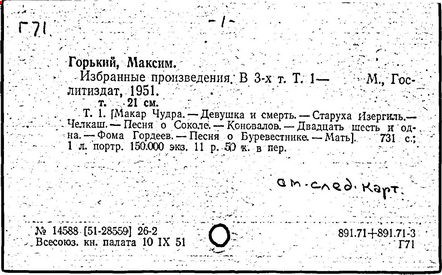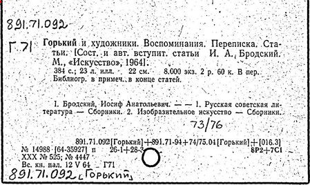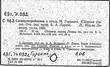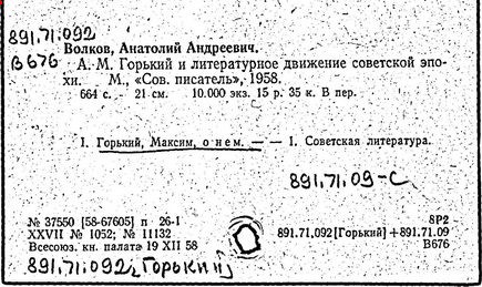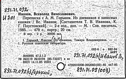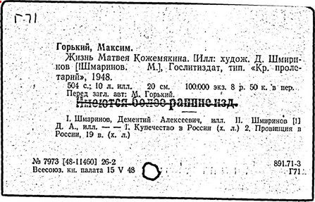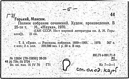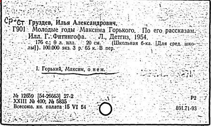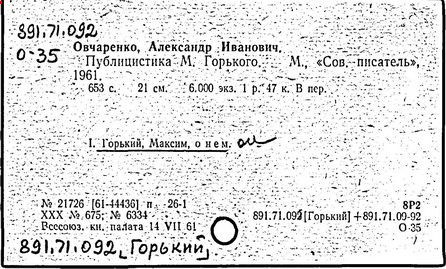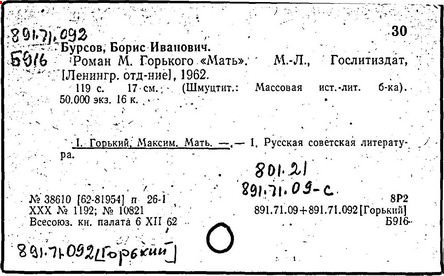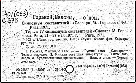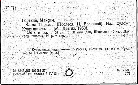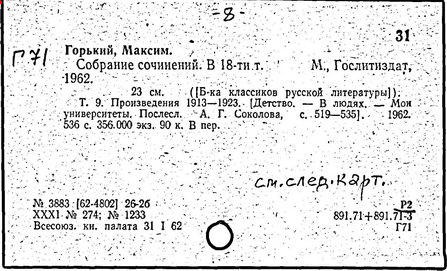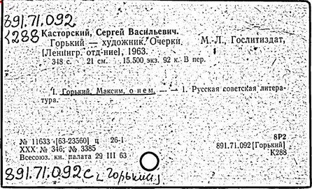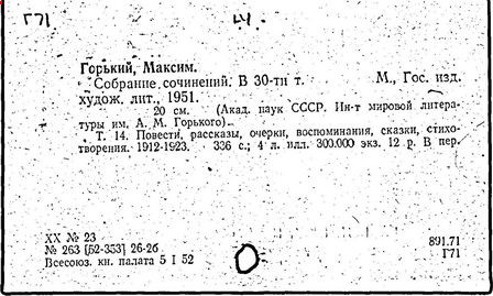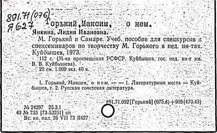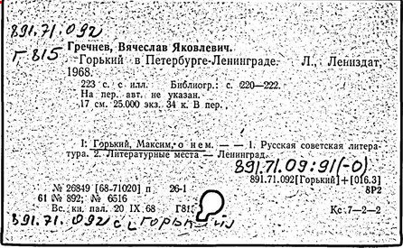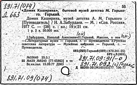 Библиография: Балухатый С. Д. Литературная работа М. Горького. М.; Л., 1936; Описание рукописей М. Горького / под ред. И. П. Ладыжникова и Е. Ф. Розмирович. Т. 1. М.; Л., 1948; Балухатый С. Д. Критика о М. Горьком. 1893-1932. Л., 1934; Балухатый С. Д., Муратова К. Д. Литературная работа М. Горького. Дополнительный список. 1889-1937. М.; Л., 1941; Произведения М. Горького в переводах на иностранные языки: библиогр. указ. М., 1958; Русская литература конца XIX - начала XX века: библиогр. указ. Т. 1. М.; Л., 1963.