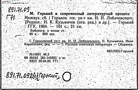 [Текст]: Горьковская призма миросозерцания