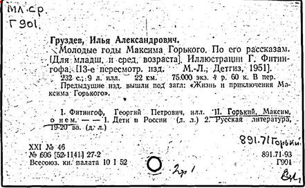русский советский писатель, основоположник литературы социалистического реализма, родоначальник советской литературы. Родился в Нижнем Новгороде. Отец Горького – столяр-краснодеревец М. С. Пешков, мать – В. В. Каширина, дочь владельца красильни. Рано потеряв отца, Горький подростком начал тяжёлую жизнь "в людях". Работал грузчиком, пекарем. Занимался самообразованием. Участвовал в нелегальных народнических кружках, вёл пропаганду среди рабочих и крестьян. После ареста в 1889 г. находился под надзором полиции. В 1888-1889 гг. и 1891-1892 гг. странствовал по России.