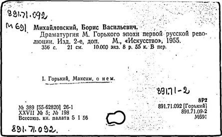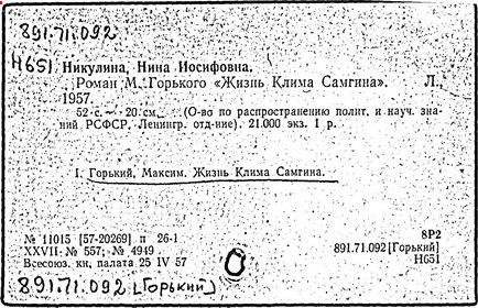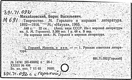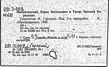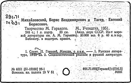 О творчестве: М. Горький. Материалы и исследования, т. 1-4. М.; Л., 1934-1951; Горьковские чтения, т. 1-10. М., 1940-1968; Пиксанов Н. К. Горький и фольклор. 2 изд. Л., 1938; его же, Горький и национальные литературы. М., 1946; Белкина Н. П. В творческой лаборатории Горького. М., 1940; Касторский С. В. "Мать" Горького. Творческая история повести. Л., 1940; его же, Горький-художник. Очерки. М. ; Л., 1963; История русской литературы, т. 10. М.; Л., 1954; Новиков В. В. Творческая лаборатория Горького-драматурга. М., 1965; Панков В. Советская действительность в изображении Горького. 2 изд. М., 1957; Волков А. А. М. Горький и литературное движение советской эпохи, М., 1958; его же, Путь художника. Максим Горький до Октября. М., 1969; Горький в эпоху первой русской революции. М., 1955; Воровский В. В. Литературно-критические статьи. М., 1956; Творчество М. Горького и вопросы социалистического реализма. М., 1958; Муратова К. Д. М. Горький в борьбе за развитие советской литературы. М.; Л., 1958; Наумов Е. М. М. Горький в борьбе за идейность и мастерство советских писателей. М., 1958; Десницкий В. М. Горький. Очерки жизни и творчества. М., 1959; Юзовский Ю. М. Горький и его драматургия. М., 1959; Бялик Б. А. М. Горький – литературный критик. М., 1960; его же, Горький – драматург. М., 1962; Нович И. Художественное завещание Горького "Жизнь Клима Самгина". 2 изд. М., 1968; Овчаренко А. И. Публицистика М. Горького. 2 изд. М., 1965; Бурсов Б. Роман М. Горького "Мать" и вопросы социалистического реализма. [3 изд.]. М; Л., 1962; Тагер Е. Творчество Горького советской эпохи. М., 1964; Луначарский А. В. М. Горький. Собр. соч., т. 2. М., 1964; Максимова В. А. Горький – редактор. М., 1965; М. Горький и его современники. Л., 1968; М. Горький и литературы зарубежного Востока. М., 1968; Михайловский Б., Тагер Е. Творчество М. Горького. 3 изд. М., 1969; Михайловский Б. В. Творчество М. Горького и мировая литература. М., 1965.
